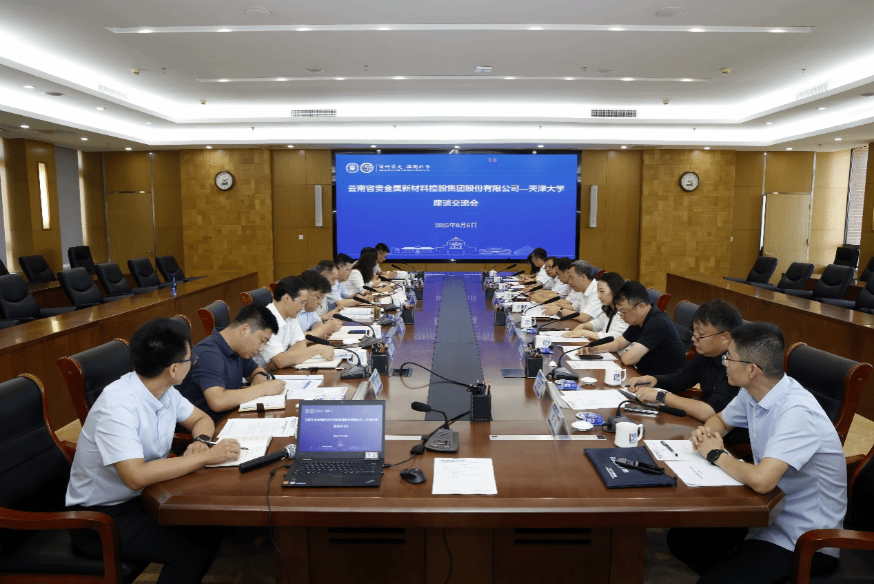 8月6日,云南省贵金属新材料控股集团股份有限公司党委书记、董事长王建强一行来访我校,校党委书记杨贤金在北洋园校区与来宾就贵金属功能材料全国重点实验室建设举行座谈。贵金属集团党委副书记、副董事长、总经理郭俊梅,党委委员、副总经理周利民,副总经理左川参加座谈。