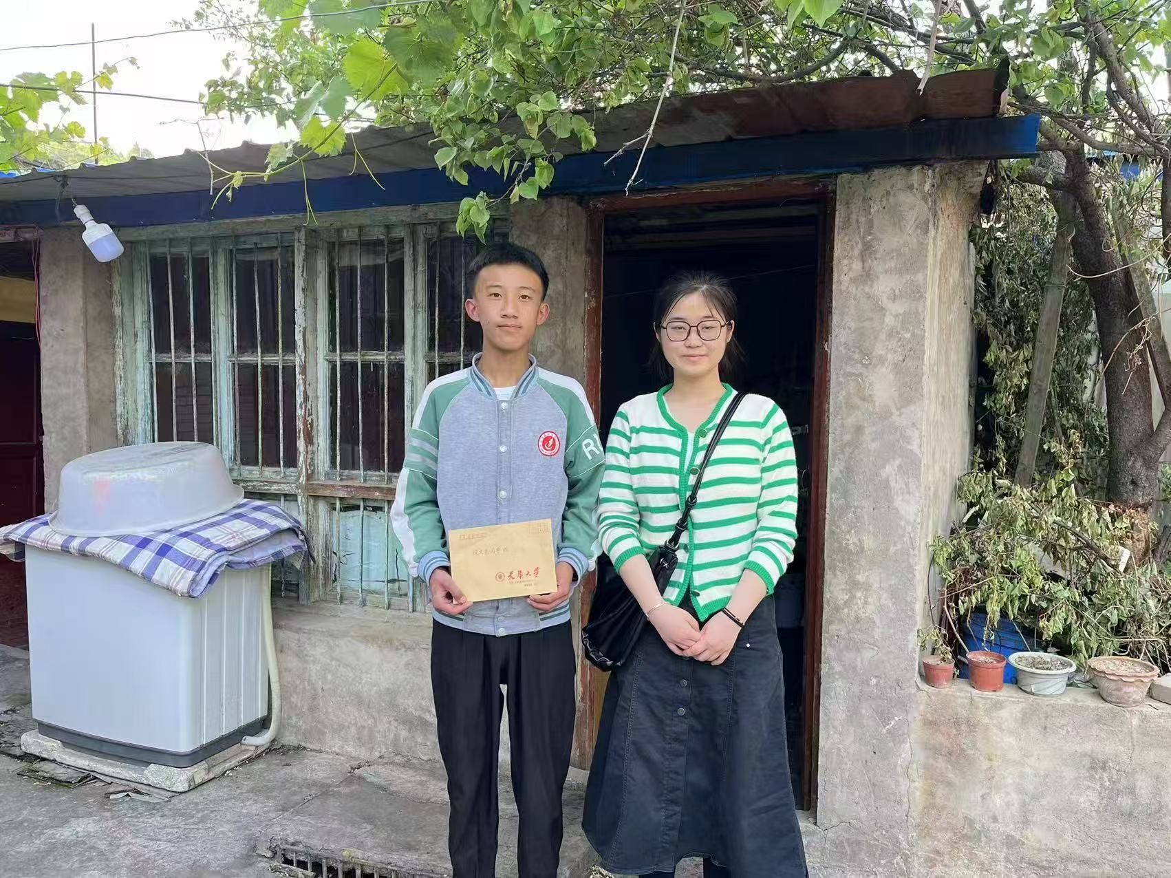 2022年4月,刘习带着第一份“爱心礼包”——500元助学金和天津大学的文创礼物去到了顾文兵同学的家中,送上远在天津的哥哥姐姐的支持与祝福。