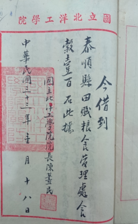 最为艰难的是师生口粮如何筹措。由于战时交通不便,物资供应困难,北洋师生经常需要向泰顺百姓借粮,当年留下的一张张泛黄的借条档案,见证了北洋师生与泰顺百姓之间的深情。