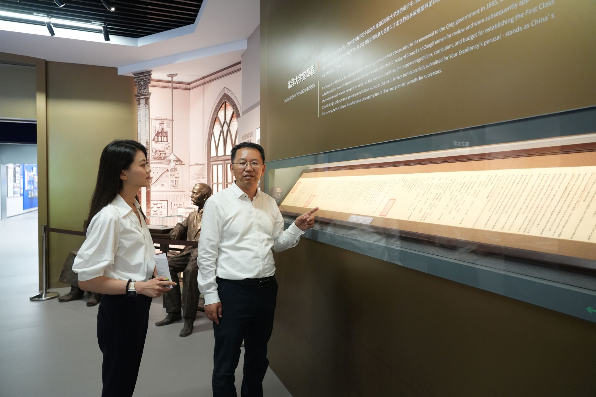 展厅内,光绪皇帝批阅的奏折静静陈列,见证着这所大学的诞生渊源。“首任总教习丁家立为北洋大学带来了系列的办学规范,他严格要求,‘重质不重量’的理念奠定了学校严谨治学的基础。”