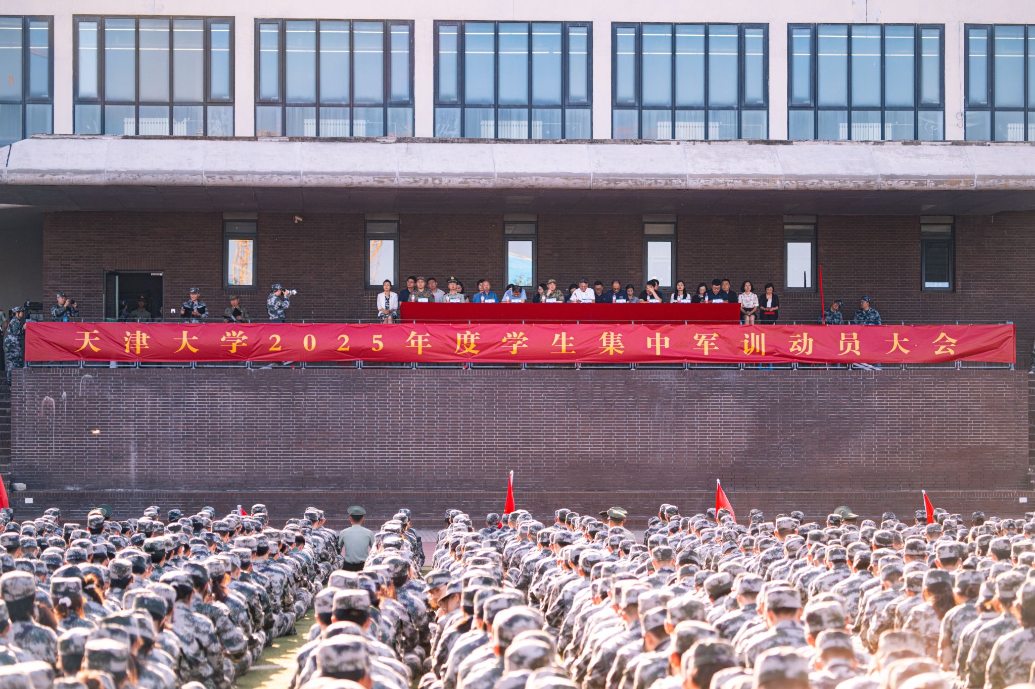 本站讯 9月8日,天津大学2025年学生军训动员大会在北洋园校区召开。天津大学党委副书记韩庆华、南开区人民武装部大校政委邓雯出席大会,武警某部41名承训官兵,学工部、宣传部、保卫部、教务处、体育部、校团委、各学院相关负责人及全体参训师生5000余人参加。