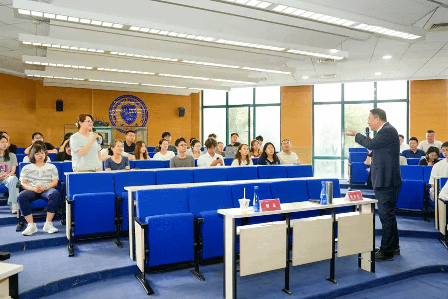 随后,张贵民作题为《生命的中医药思考》的学术报告。他从中医整体观出发,系统阐述了中医药在调节人体平衡、延缓衰老及增强免疫等方面的独特理念,并结合鲁南制药集团在现代中药研发中的创新案例,展现了经方与现代科技融合的广阔前景。报告内容翔实、深入浅出,引起在场师生的浓厚兴趣。互动环节中,大家围绕中医药理论创新、药物作用机制及校企合作模式等话题展开热烈讨论。