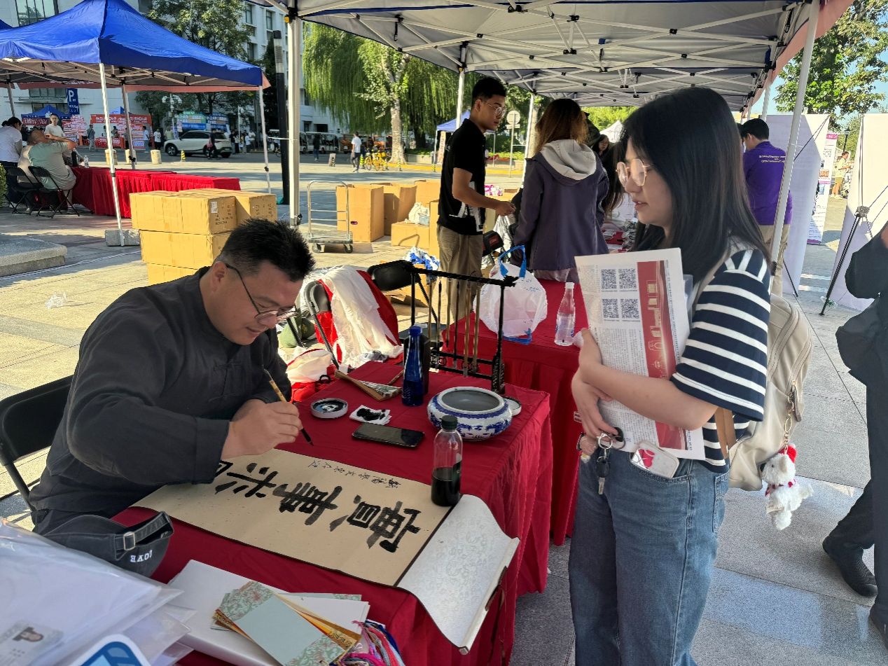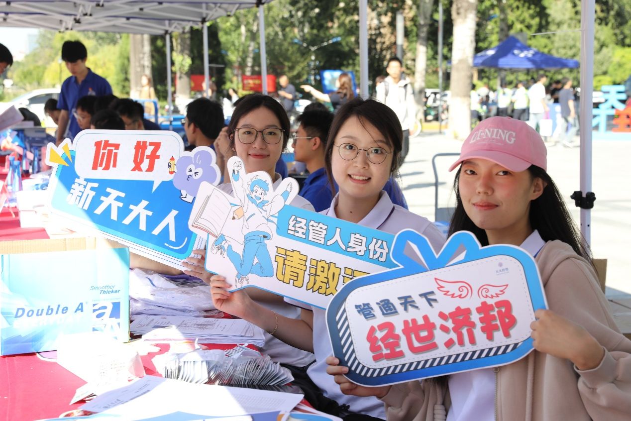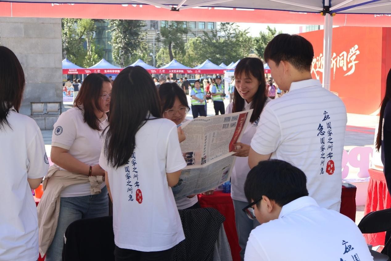 平台,吸引众多新生驻足,学院还发放院徽与130周年校庆徽章,帮助新生在触摸历史的过程中增强归属感与认同感;新媒体与传播学院为新生送上一份实用与创意兼备的礼物——精美院包,“包”揽创意、“包”赢未来的设计理念,广受新生好评;教育学院以“生命树”和“种子卡”为喻,布置出童趣与深度并存的迎新场景,“生命树”上贴满写有姓名与心愿的树叶卡片,象征个体与集体的共生共长。每位新生还收到一张小雏菊“种子卡”,寓意“播撒希望,茁壮成长”;人文艺术学院的报到点墨香四溢,老师现场挥毫,在书签上题写励志寄语赠与新生。学院新生王柏叶说:“我会继续保持在部队培养的优良作风,充分享受学院独特的文化氛围,专注学业,不负时光。”她曾参军两年,退役后备战考研,最终成功圆梦天大。