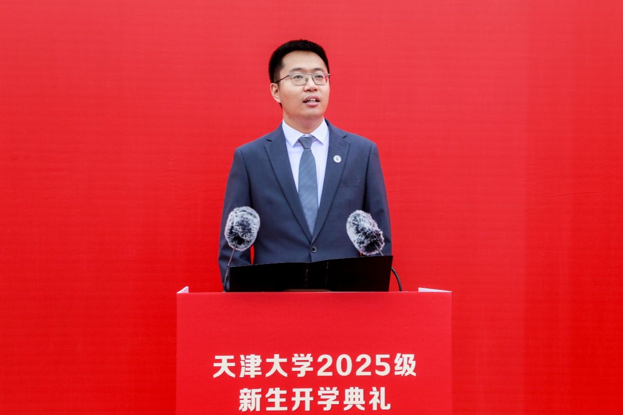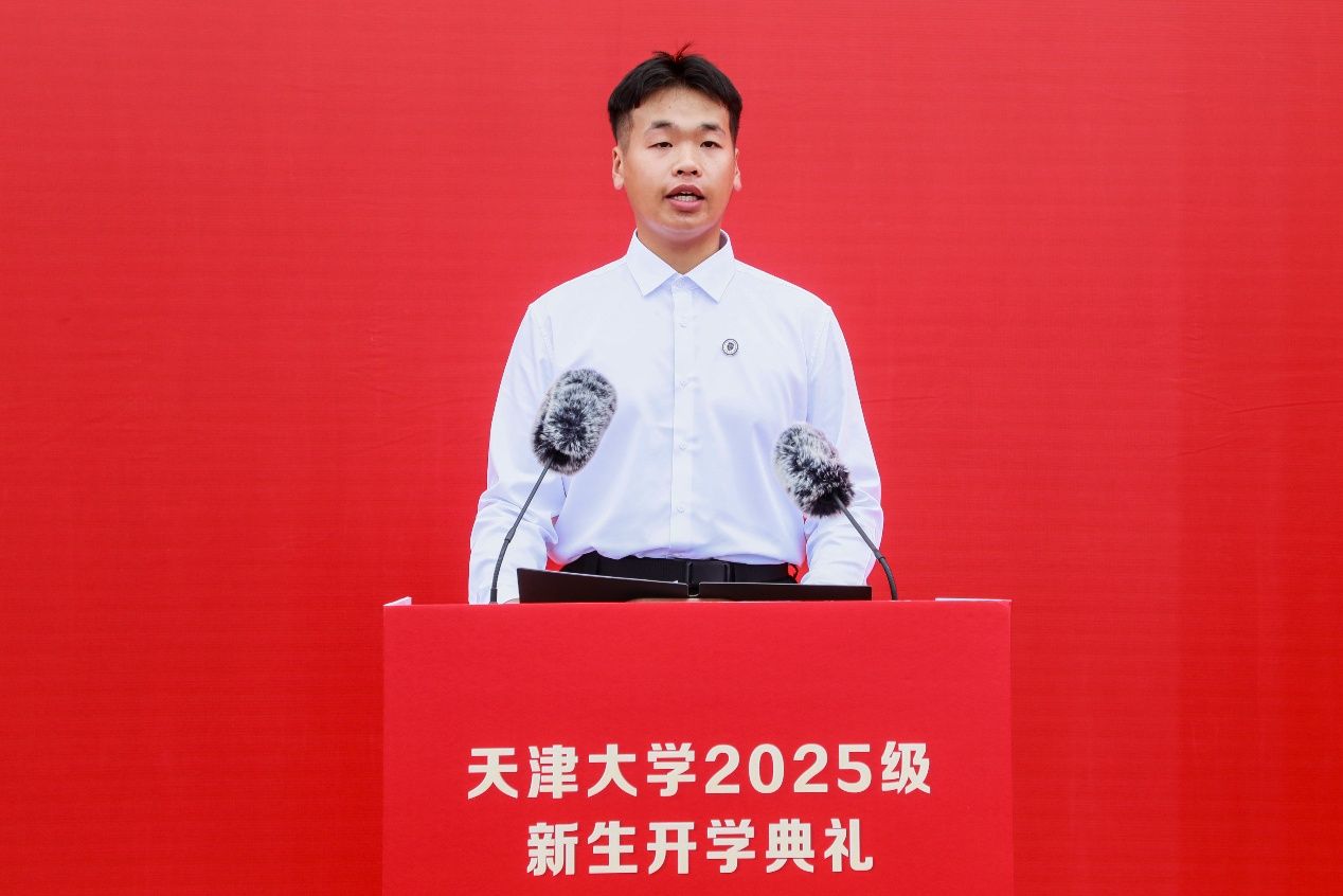 “天大不仅是知识的殿堂,更是面向未来、充满活力的创新引擎。”管理与经济学部陈虹锦作为研究生新生代表发言,从法语学科跨越到工商管理,她希望在交流合作中彼此成就,贡献天大独有的、跨学科的智慧与力量。