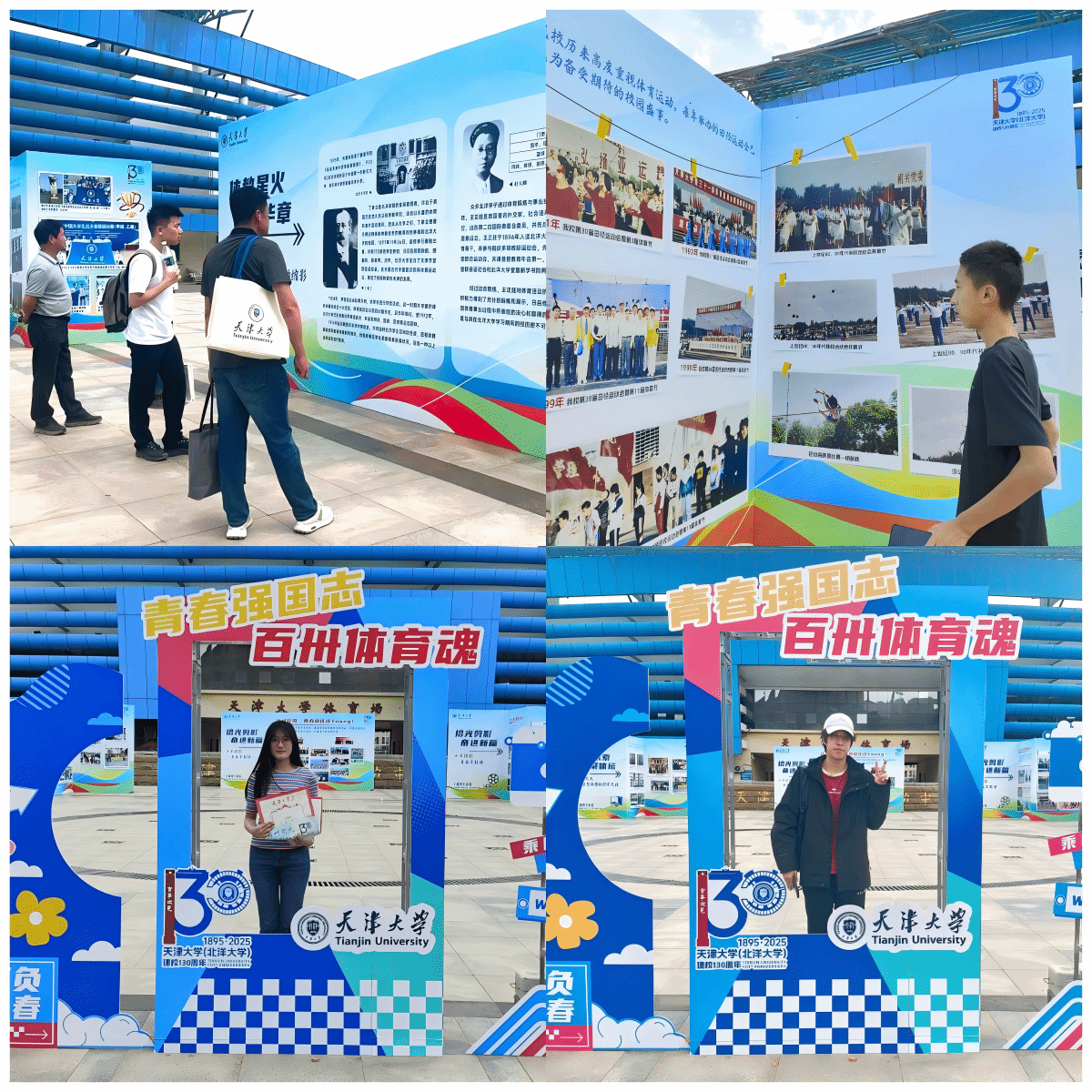 为庆祝天津大学130周年校庆,体育部精心策划“青春强国志,百卅体育魂”主题照片展览,于10月2日至7日在卫津路校区体育场举行。本次展览作为献礼百卅校庆的重要文化活动之一,以光影为媒,用镜头作画,为全校师生及校友呈现了一场穿越时空的视觉盛宴,全景式回顾了天大体育百花齐放的百年历程。
