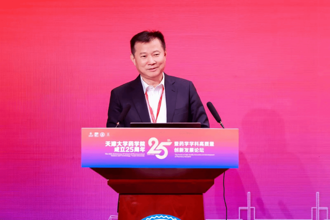 天津市卫生健康委员会党委委员、副主任刘先夺致辞时充分肯定了学院在服务地方健康事业发展中的重要作用。他表示,天大药学院参与国家医保目录调整制定惠及民生、推动中药标准化助乡村振兴,始终以人民健康为中心,与国家、地方战略同频共振,深化“产学研医”融合。希望以此次论坛为契机,勇担使命,为增进人民健康福祉、建设健康中国做出新的更大贡献!