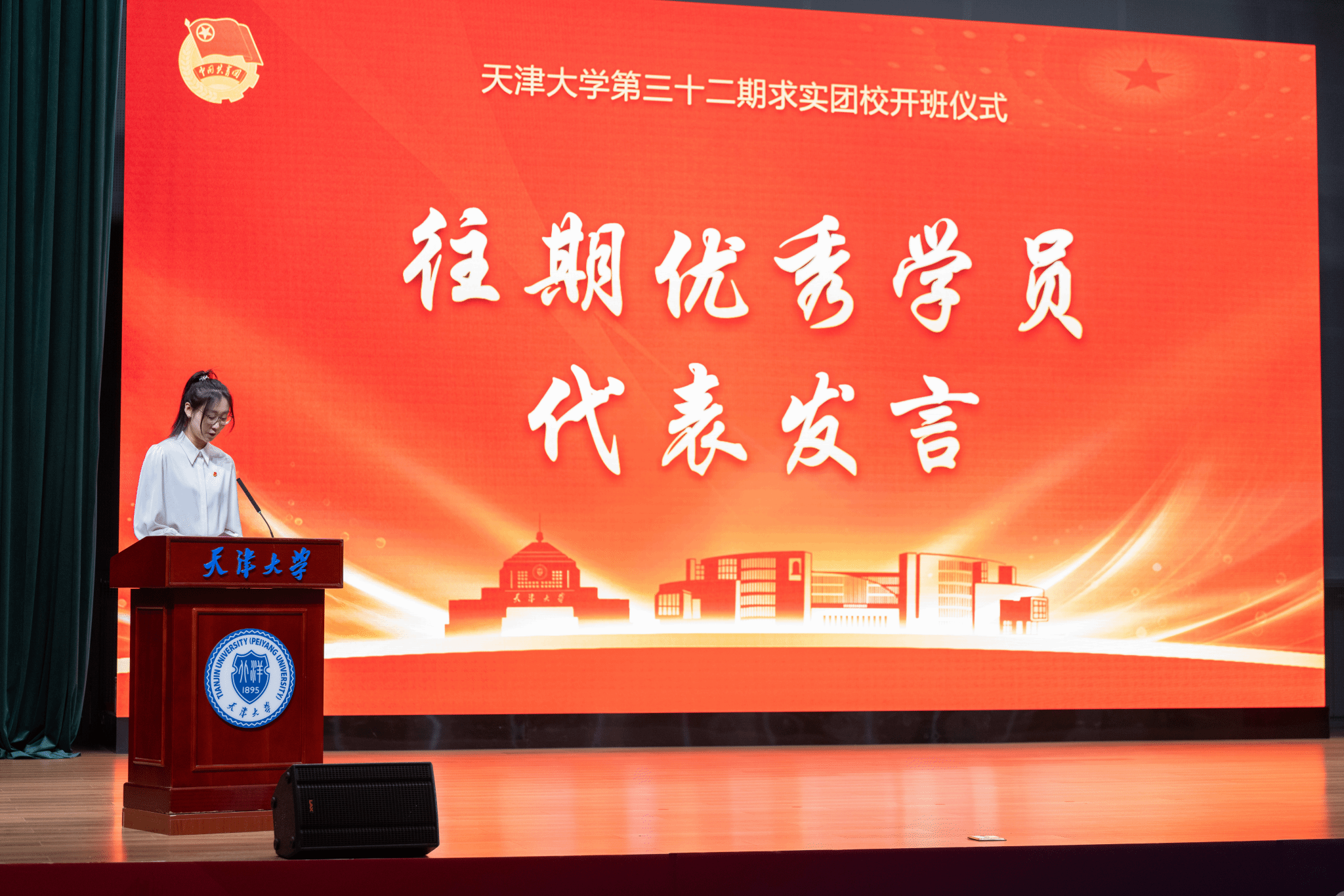 与学生工作有机结合,为服务“健康中国”等国家战略贡献青春力量。马克思主义学院2022级本科生、天津市第八期青马工程高校班学员代表李思潼则分享了自己从初团启航、在领航班淬炼、成长为天津市青马工程学员的成长之路,讲述了从理论积淀到实践转化的心路历程。她以亲身经历诠释“求实”真谛——知行合一、服务社会,并鼓励新学员在天大深厚的土壤中高擎使命,在民族复兴伟业中展现青年担当。