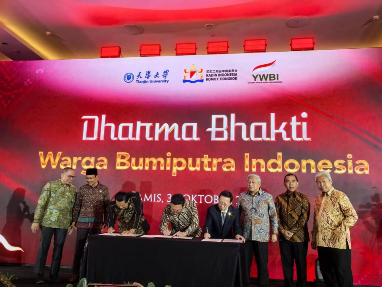10月30日,天津大学校长柴立元率团访问印度尼西亚,与印尼工商会中国委员会(KIKT)、印尼土著公民基金会(YWBI)在雅加达举行合作签约仪式,校长柴立元、YWBI主席亨德罗普里约诺以及KIKT主席加里波第·托希尔代表各方签约。印尼社会事务部长赛义夫拉·优素福、印尼土著公民基金会主席亨德罗普里约诺、印尼陆军退役中将瓦伦蒂努斯·苏哈托诺·苏拉特曼,印尼前国民教育部长穆罕默德·努赫等出席活动并见证签约。天津大学国际处、国际教育学院相关负责同志参加签约活动。