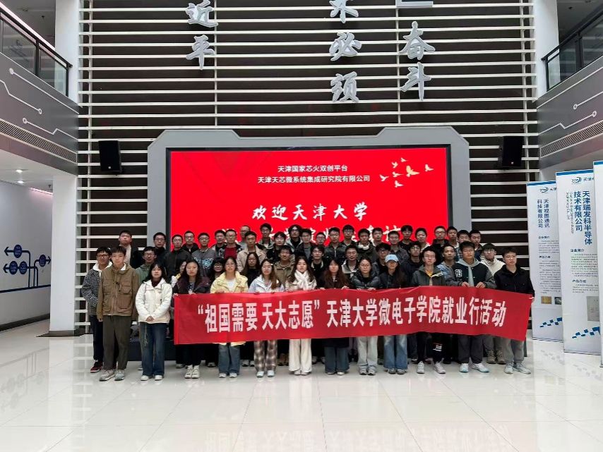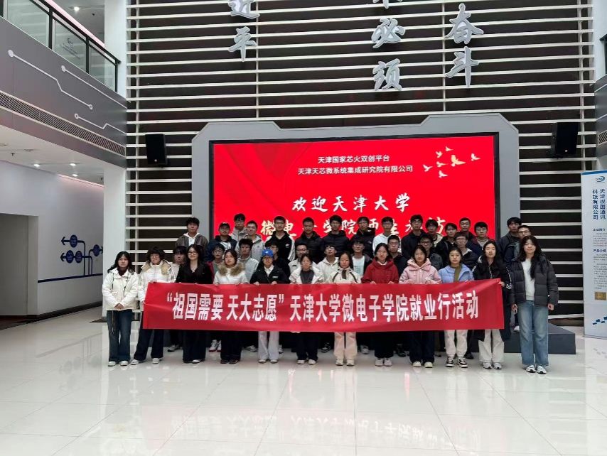 为深入落实“访企拓岗促就业”专项行动,积极推进校企协同育人、产教融合新格局,帮助学生了解行业前沿、感受企业文化、拓宽职业视野,10月31日下午,微电子学院组织开展了“祖国需要 天大志愿”就业行系列活动,80余名学生走进天津国家芯火双创平台参观交流。本次活动由学院与企业精心组织安排,旨在引导学生走出课堂、走进企业,将专业学习与产业实践深度融合,为未来的职业规划和发展方向打下坚实基础。