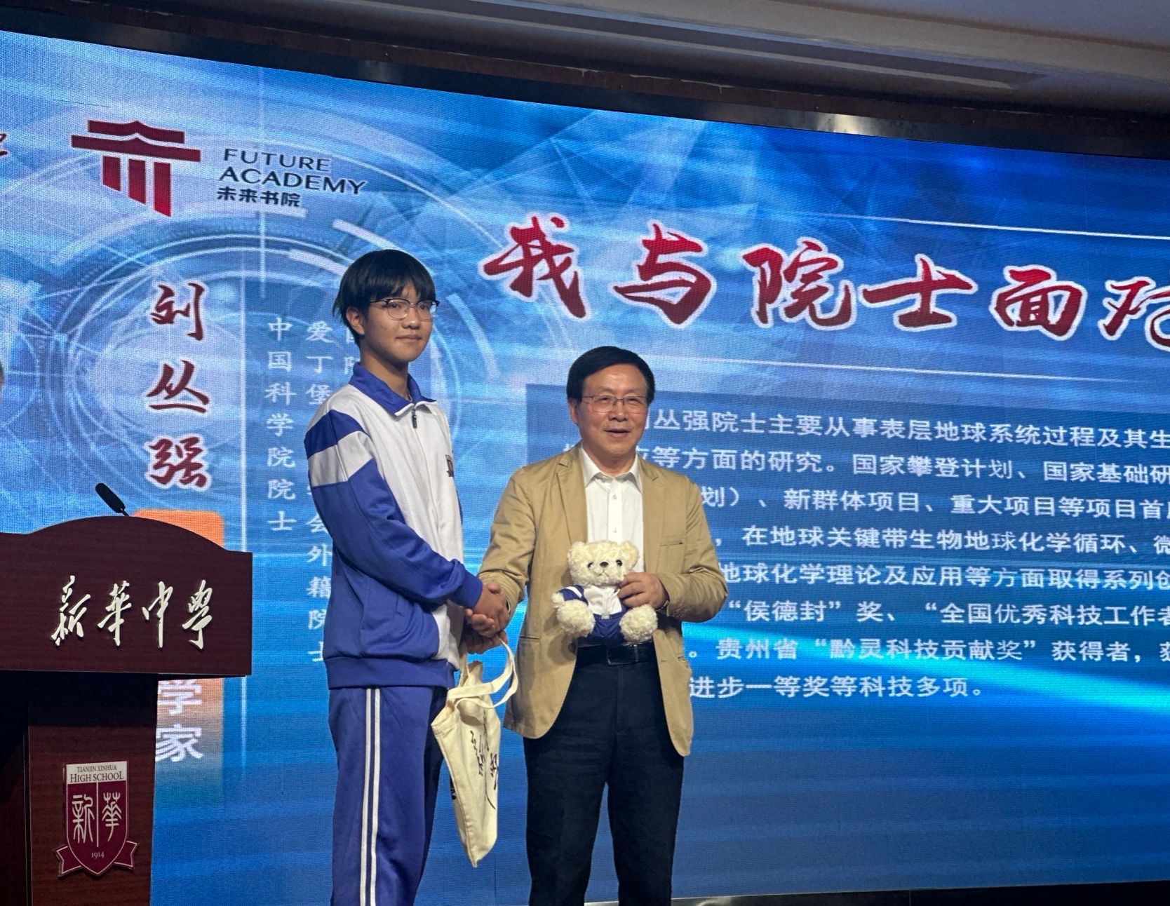 报告会前,刘丛强院士还与新华中学地理组师生展开面对面交流。他耐心指导中学阶段地理教学的重点方向,细致解答师生提出的地理学科相关问题。这种近距离接触科学大师的机会,超越了传统课堂的局限,让同学们真切感受到科学研究的魅力,也为高中生的学业发展注入了新的活力。