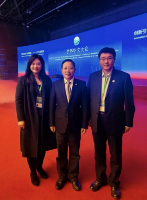 本站讯 11月14日至16日,由教育部主办的“2025世界中文大会”在北京国家会议中心举行。本次大会以“创新引领 数智赋能——让中文零距离”为主题。中共中央政治局常委、国务院副总理丁薛祥出席大会开幕式,并发表主旨讲话,教育部部长怀进鹏主持会议。我校校长柴立元、副校长明东应邀出席会议,国际教育学院负责同志陪同参会。