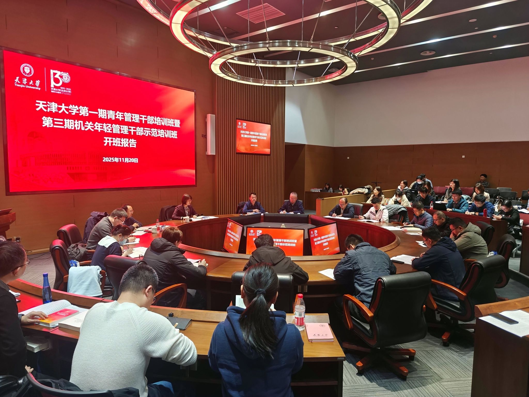11月20日,天津大学第一期青年管理干部培训班暨第三期机关年轻管理干部示范培训班开班式在北洋园校区郑东图书馆南区多功能厅举行。校党委常务副书记雷鸣出席开班式并作首场报告。机关党委常务副书记杨波、教师培训中心主任潘海生,第一期青年管理干部培训班、第二期青年骨干教师培训班、“领航工作站”全体学员等60余人参加开班式。开班式由校党委常委、组织部部长赵金铎主持。