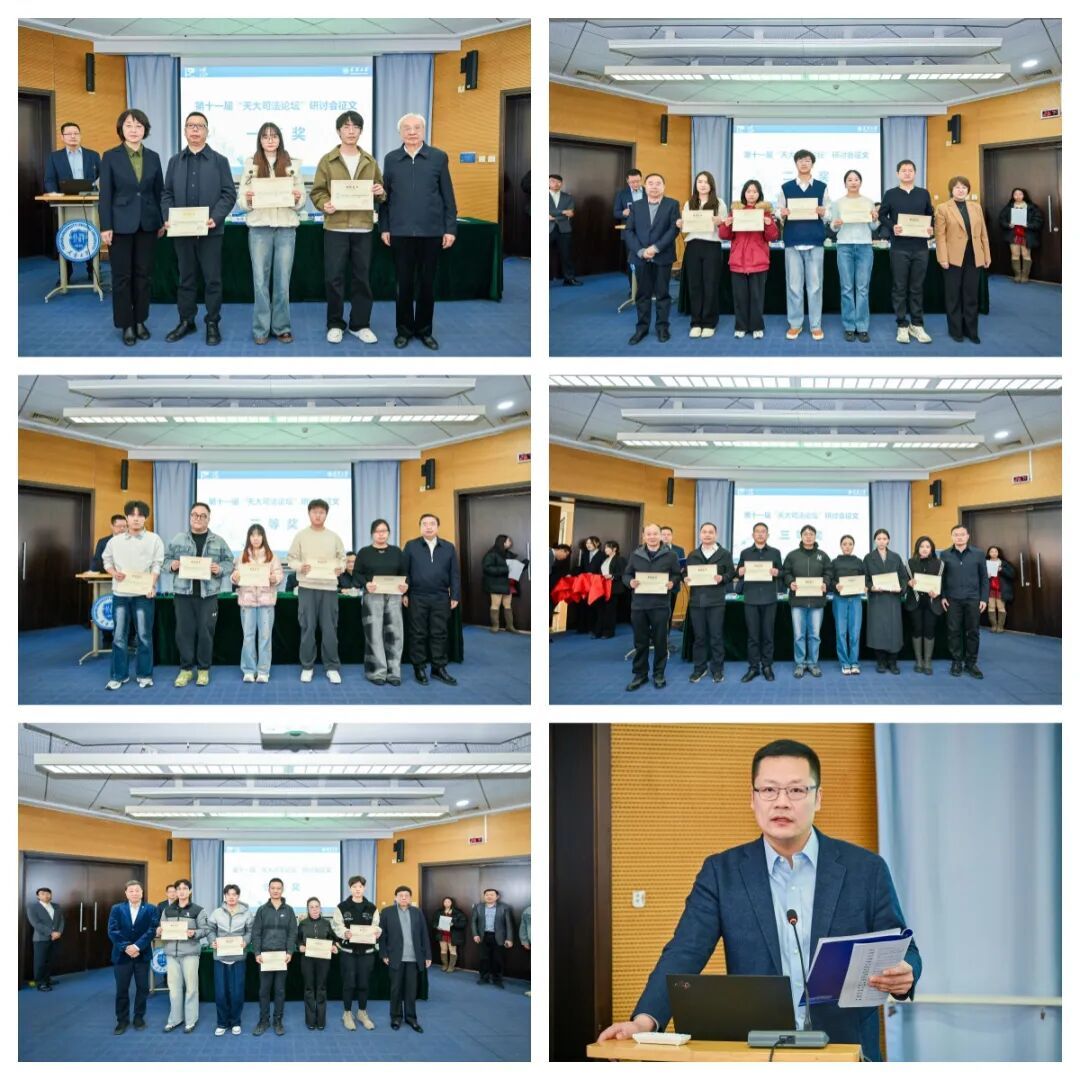 颁奖环节由天津大学法学院院长助理、教授薛杨主持。中国行为法学会常务理事、司法专业委员会副会长、北京紫华律师事务所主任钱列阳,中国行为法学会常务理事、司法专业委员会副会长、北京德恒律师事务所副主任李贵方为优秀奖代表颁奖。最高人民检察院检察理论研究所副所长、中国法学会检察学研究会秘书长、《中国刑事法杂志》副主编陈坚,最高人民法院环境资源审判庭副庭长田心则为三等奖代表颁奖。孙佑海、天津大学法学院党委书记管虹为二等奖代表颁奖。李文燕、张俊艳为一等奖代表颁奖。