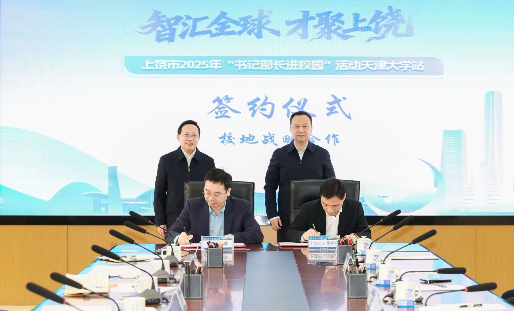 12月19日,上饶市2025年“书记部长进校园”活动在天津大学举行。上饶市委副书记、市长李建涛,天津大学校长柴立元出席并致辞;上饶市政府秘书长毛祖宾,天津大学党委常委、副校长王天友出席活动。
