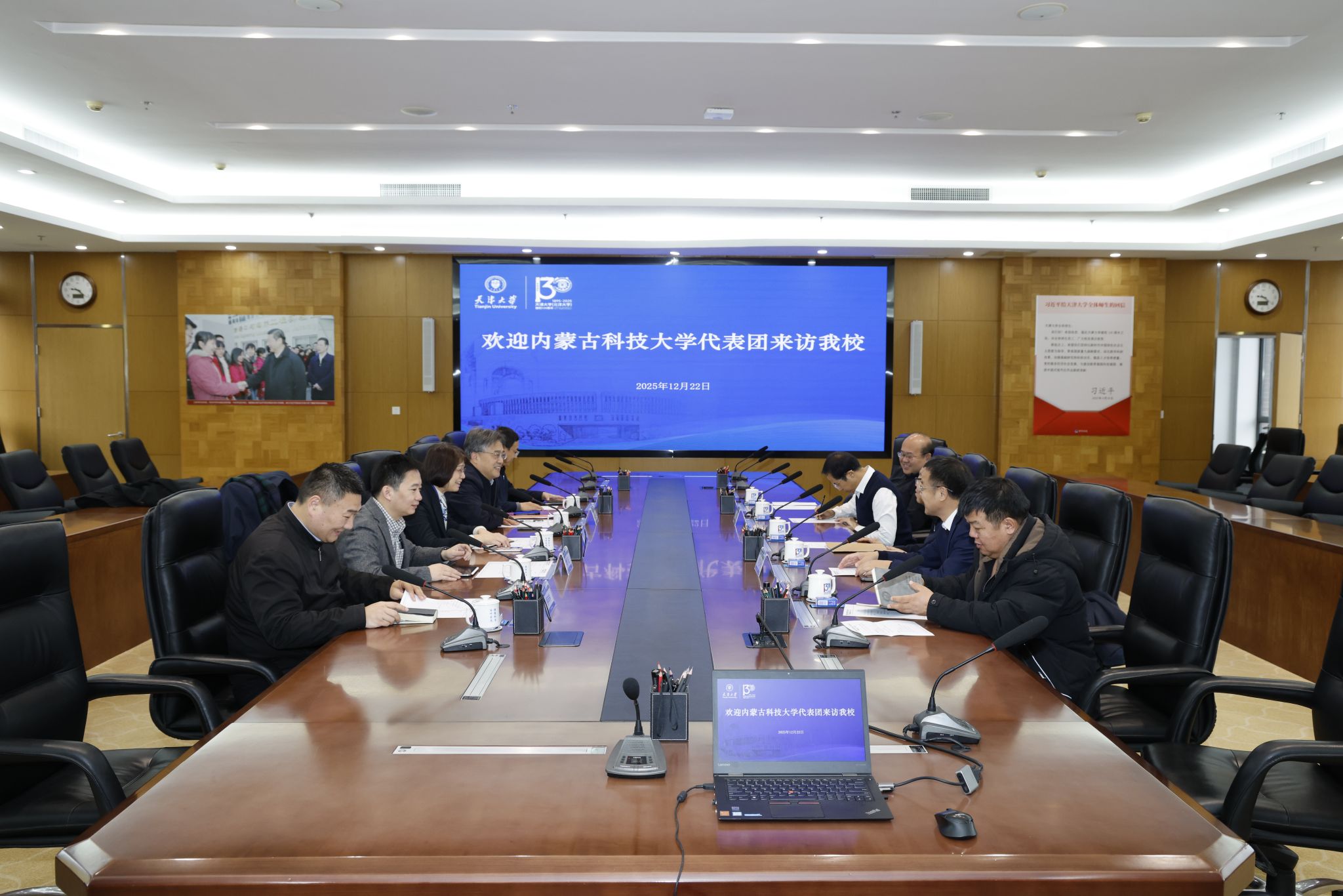 呼和对天津大学的热情接待表示感谢,并介绍了内蒙古科技大学的发展情况。他表示,学校正着力构建以“+稀土”为核心的学科高峰,完善以优势特色学科为引领、多学科协调发展的学科专业体系,已在稀土、冶金、材料、矿业、机械等领域形成了鲜明特色。他希望双方继续深化合作,特别在科技攻关、人才培养、学术交流、成果转化、平台共建等方面携手探索新模式、开拓新领域,实现互利共赢、共同发展。