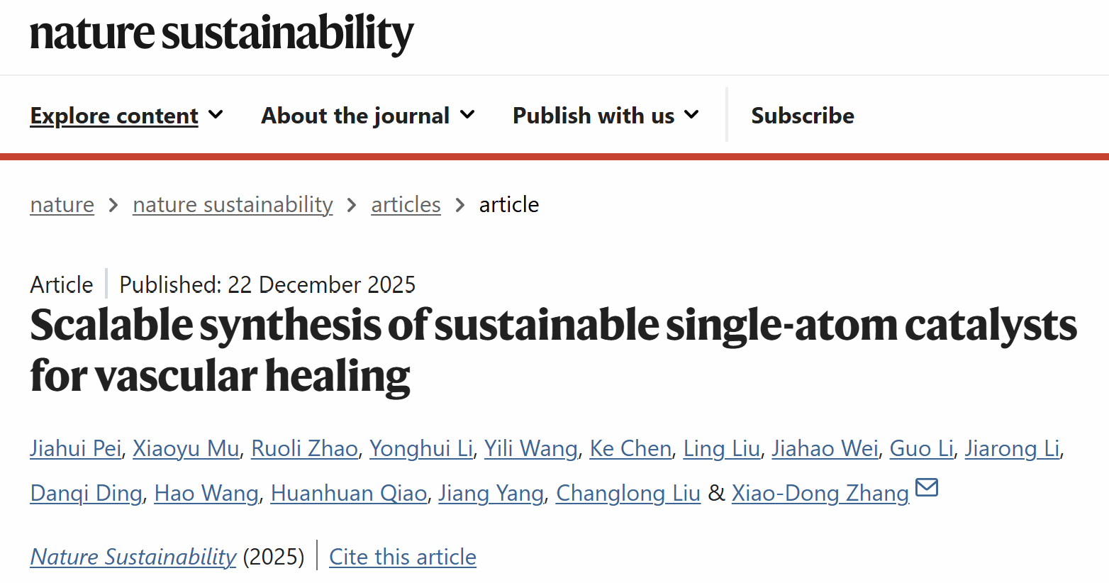 近日,天津大学医学部医学院张晓东教授团队成功开发出一种新型高性能单原子生物催化材料,并首次将其应用于血管支架,为心脑血管疾病的长效治疗提供了全新解决方案。相关成果论文已于2025年12月22日发表于国际顶级期刊《自然·可持续发展》(Nature Sustainability)。