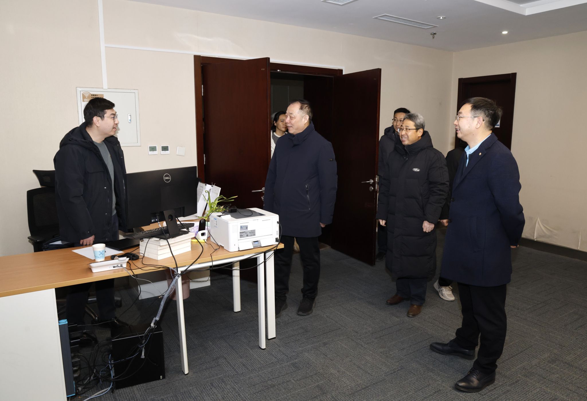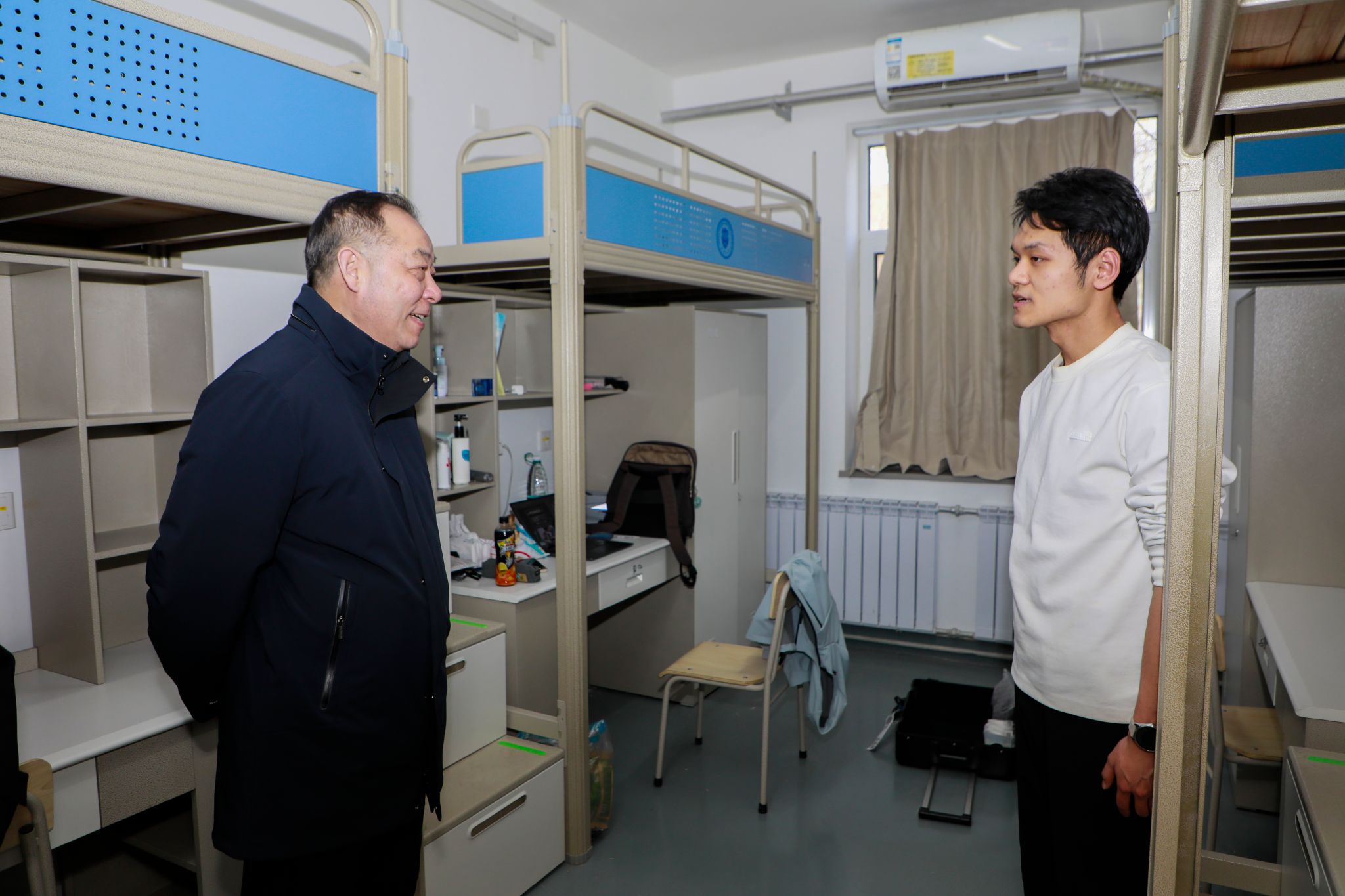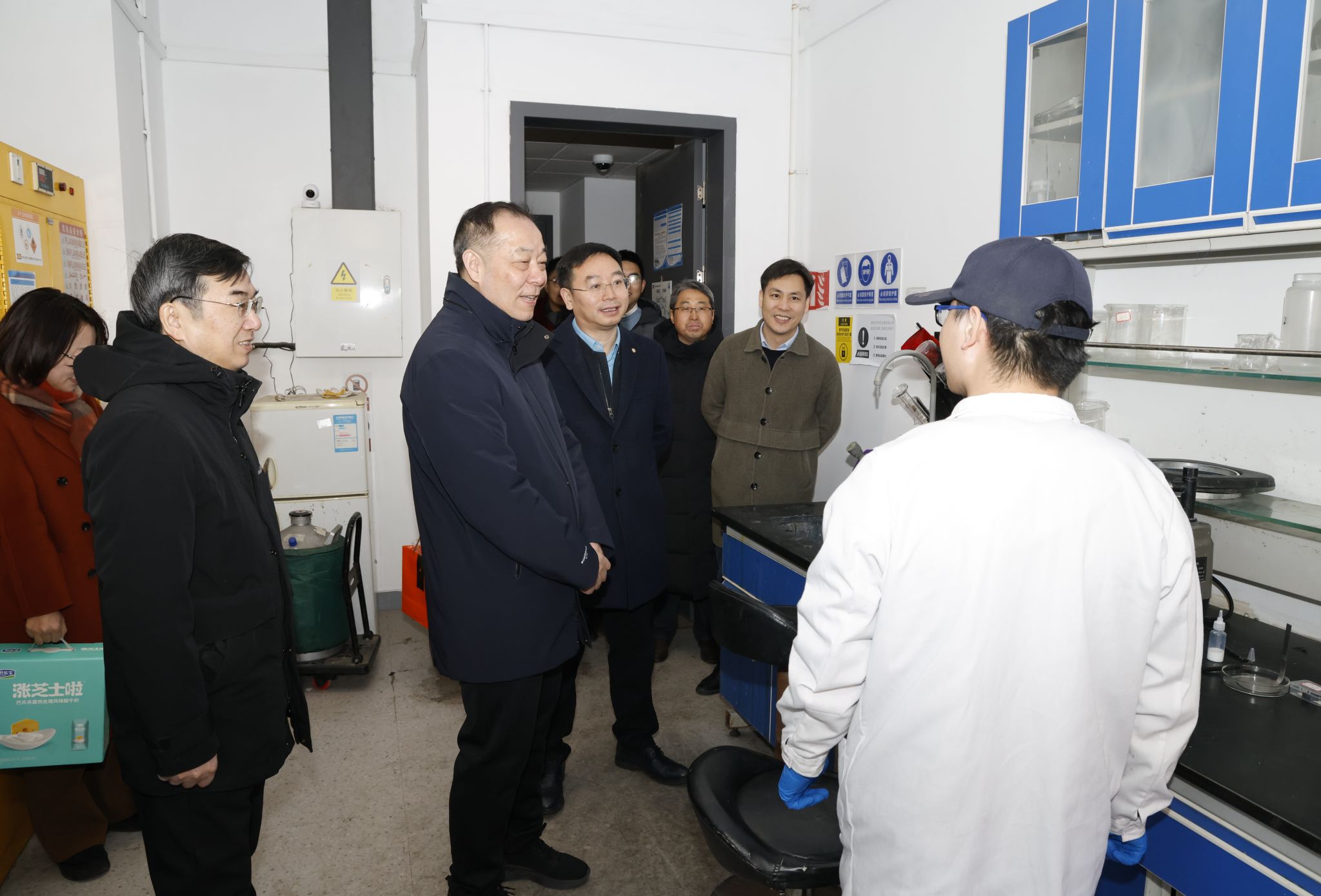 上午,杨贤金一行先后来到北洋园校区总值班室、第50教学楼实验室、保卫处监控大厅、能源站、三问园消控室、桃园食堂及南门值守点,与值班人员、在校师生亲切交流,详细了解校园运行、安全监控、能源保障、膳食供应等情况;下午,杨贤金一行检查了北洋园校区东门及卫津路校区东门、西门的值守情况,走进47斋学生宿舍、学三食堂,看望留校学生,慰问后勤服务人员,实地查看学生生活保障及食堂供应准备情况,感谢大家为保障校园平安有序、服务留校师生所付出的辛勤努力。