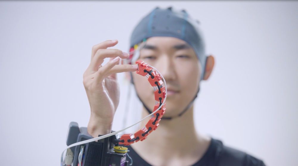 天津大学新利18网址登录 人员测试脑控外肢体(手部)康复机器人。新华社发