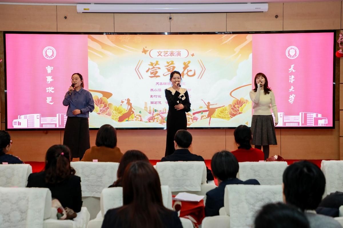 座谈阶段主要包括优秀女教职工代表访谈、主题讲座、文艺表演三部分,气氛温馨而热烈。访谈环节由马克思主义学院青年教师赵冶主持,人文艺术学院教授、全国三八红旗手何慧俐为本次活动专门录制了经验分享视频,以文化为桥分享两岸融合发展的实践与思考,让在场听众深受触动。天津大学首席辅导员、全国三八红旗手冯翠玲,经管学部教授、天津市三八红旗手傅利平,理学院教授、天津市三八红旗手杨秋华,经管学部教授、天津大学女教授合唱团团长罗青四位优秀女教职工代表围绕立德树人、新利18网址登录
