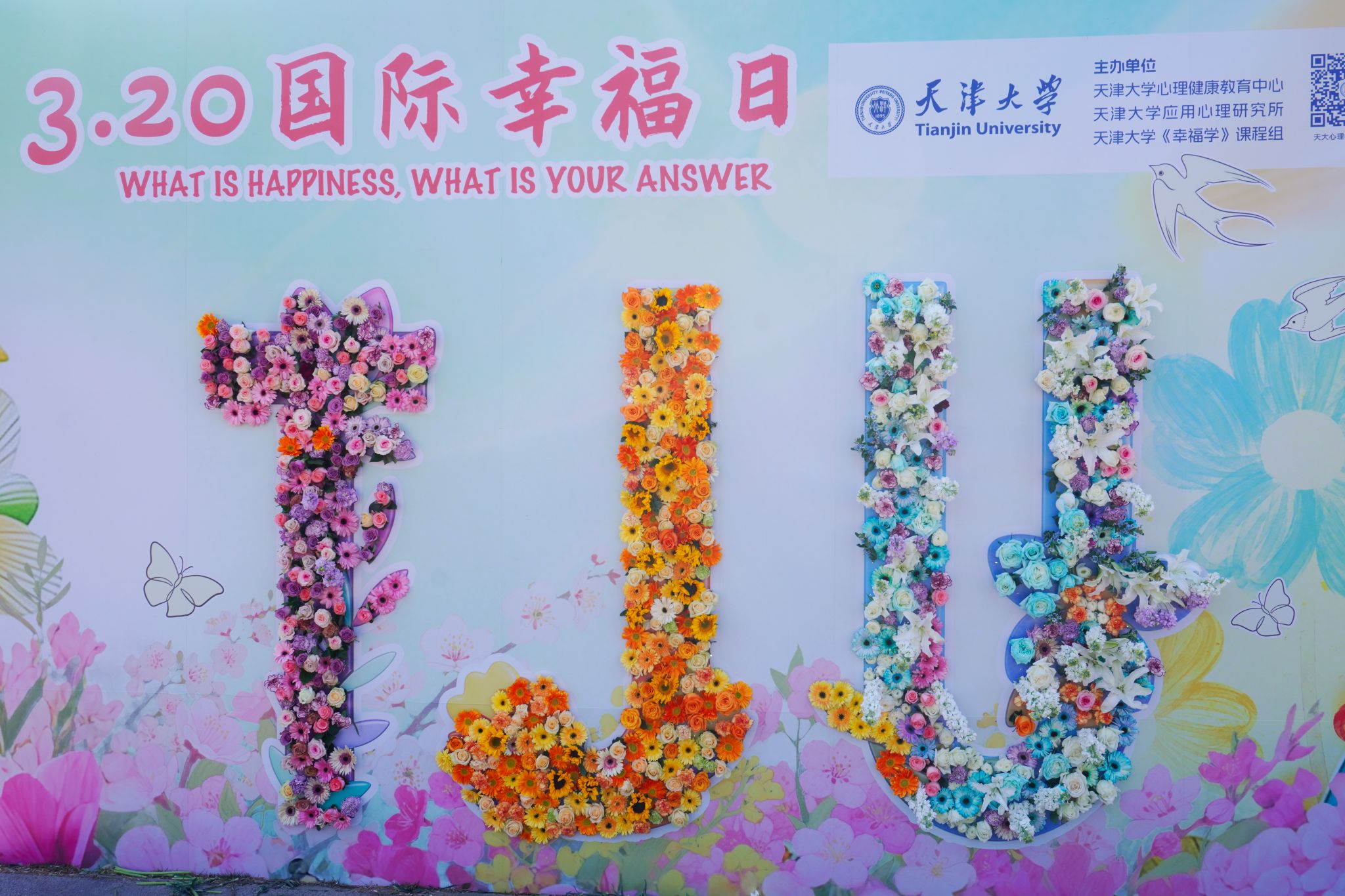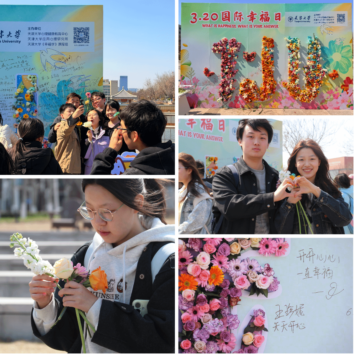 3月20日,天津大学“Fun肆春天·补充元气”3.25心理健康教育系列活动启动仪式暨“320国际幸福日”主题活动在北洋园、卫津路双校区同步温情开展。本次活动由天津大学心理健康教育中心、应用心理研究所、《幸福学》课程组联合主办,以鲜花为媒、以游戏会友,意在让全校师生在校园中邂逅美好,感受幸福,也为本年度“心动四季·幸福北洋”系列活动拉开温馨序幕。