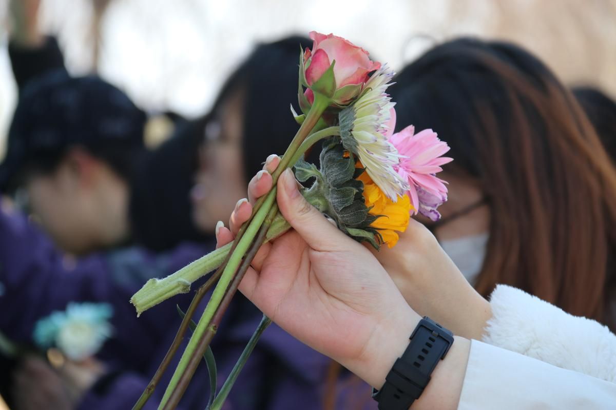 领取鲜花的同学