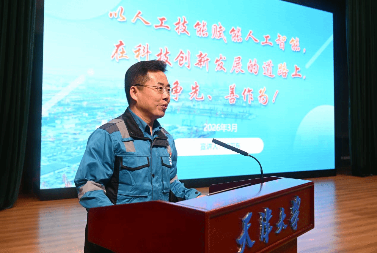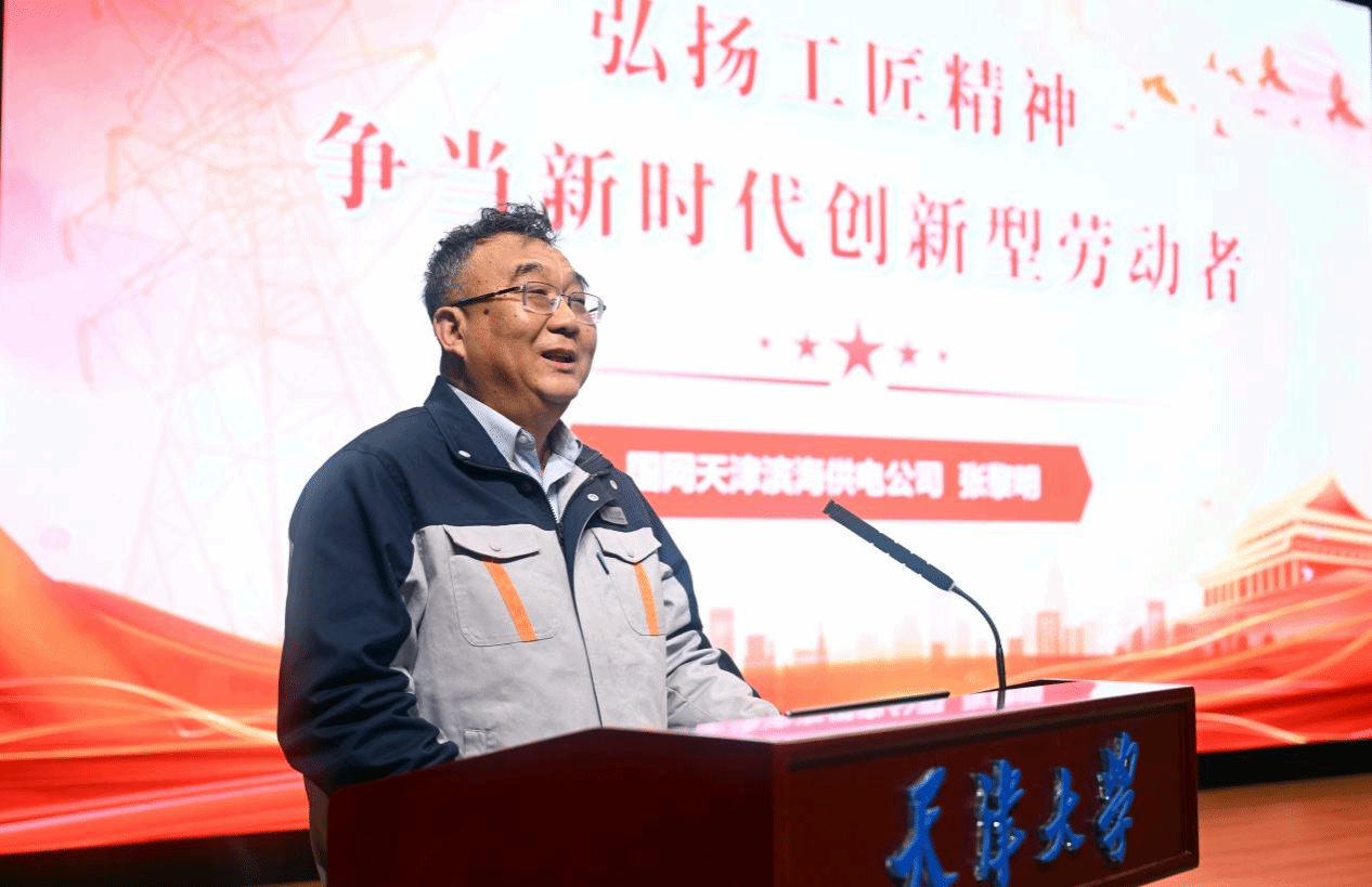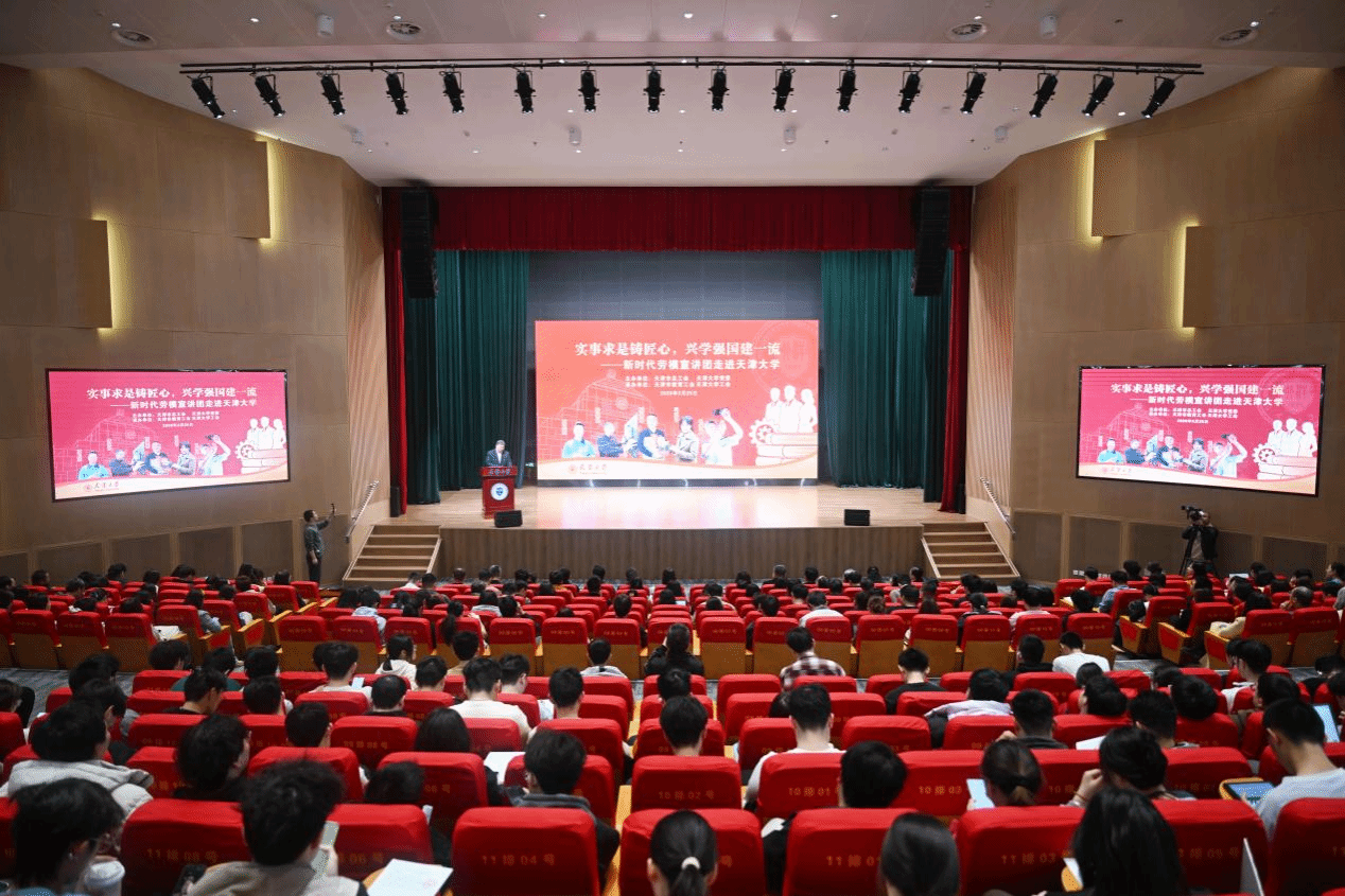 活动现场,时代楷模、全国劳模张黎明,全国劳模、大国工匠年度人物成卫东,全国先进工作者、大国工匠年度人物李晓宝,全国先进工作者毛博文,天津市“最美职工”冯天甲等5位来自不同行业的劳模工匠代表先后走上讲台。他们结合自身成长经历和奋斗实践,分享了在电力抢修、港口建设、航天制造、公安科技、城市规划等领域创新创造、实干拼搏的劳模故事、劳动故事、工匠故事,激励青年学子走技能成才、技能报国之路。在互动环节,天津大学学生代表就如何理解与践行工匠精神、面对科技变革如何规划职业生涯等话题,与宣讲团成员进行了热烈交流。宣讲团成员坦诚而富有见地的回答,引发了在场师生的思想共鸣。