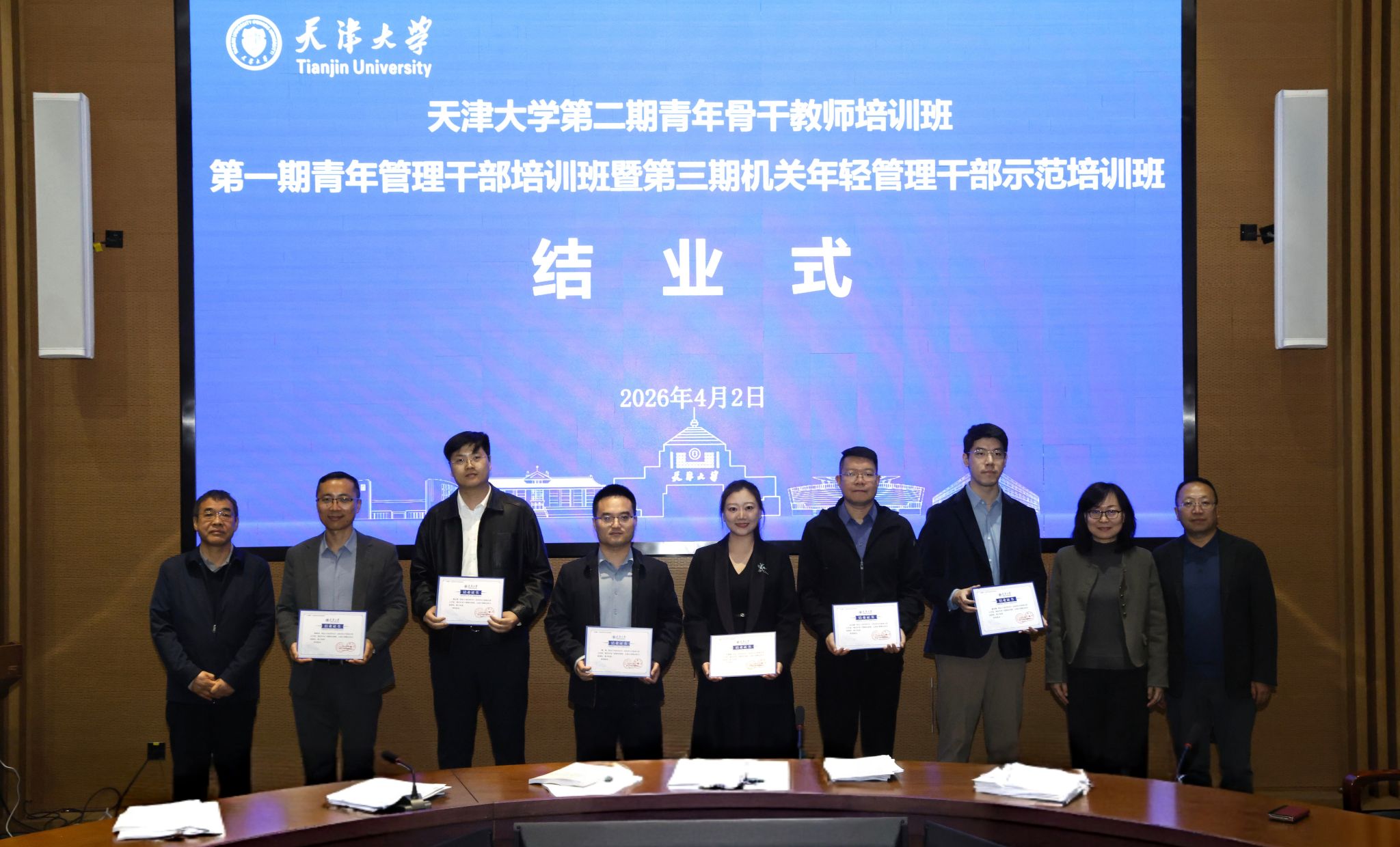 4月2日,天津大学第二期青年骨干教师培训班(简称“青骨班”)、第一期青年管理干部培训班暨第三期机关年轻管理干部示范培训班(简称“青干班”)结业式在北洋园校区举行。校党委书记杨贤金出席结业式并讲话,校党委常务副书记雷鸣主持结业式。青骨班、青干班全体学员,相关部处负责同志参加。