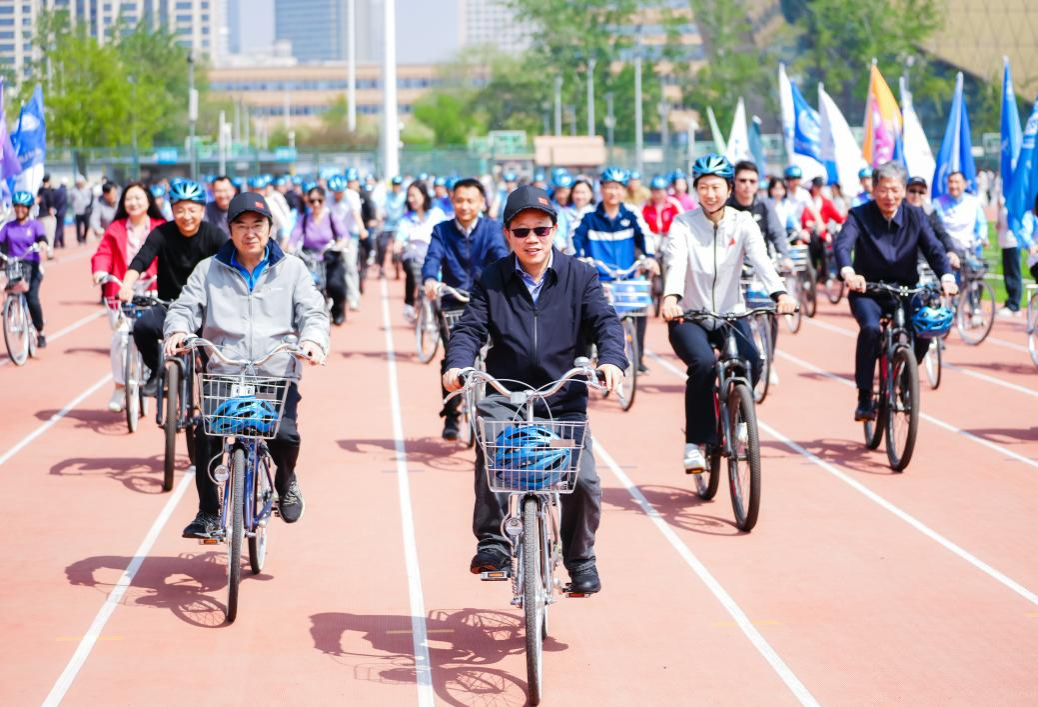比赛正式开始之前,校领导们走上田径场,与师生代表进行绕场骑行活动,以身体力行传递着“野蛮其体魄,文明其精神”的育人理念,激励着天大学子以昂扬之姿奔向星辰大海般的人生征途。