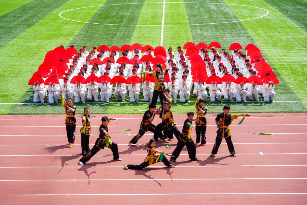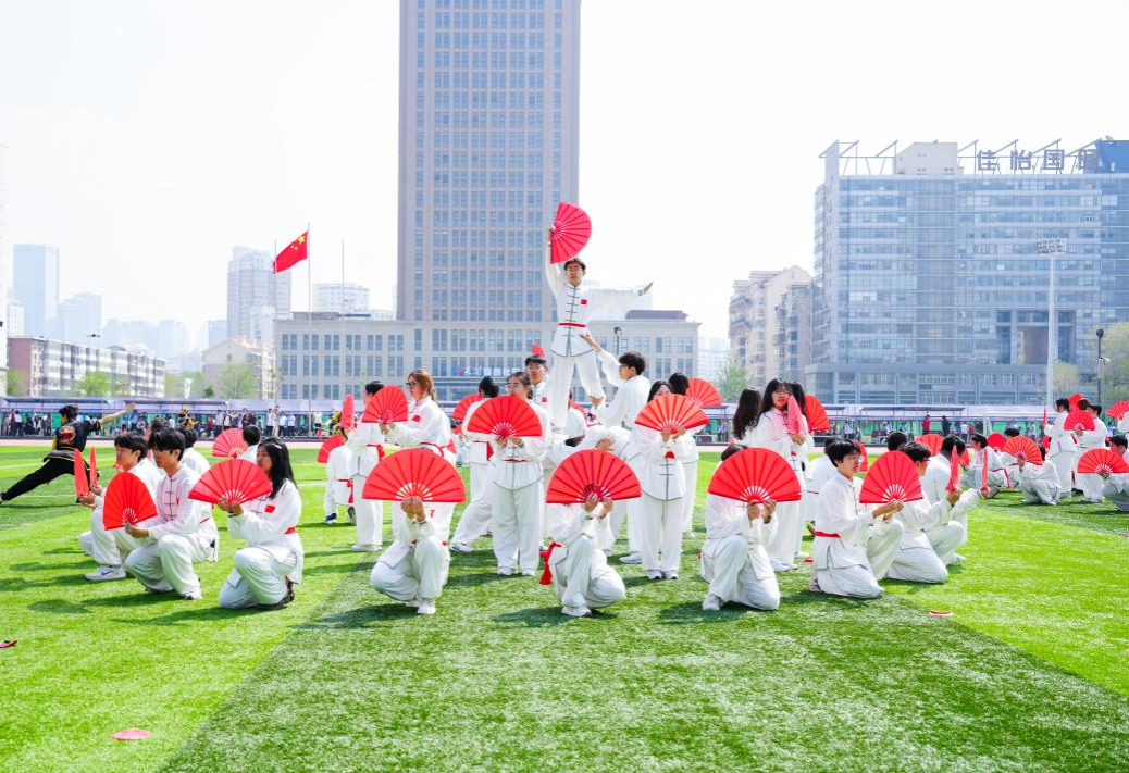 开幕式上,天津大学幼儿园的小朋友们带来了团体操表演《逐梦—兴我中华》,粉雕玉琢的小脸蛋上洋溢着朝阳般灿烂的笑容,银白色舞服科技感十足,赢得了现场观众的阵阵掌声。随着音乐转换,天津大学教职工广播体操展演以别样的风采登场。平日里严谨认真的老师们,此刻身着统一运动装,动作行云流水,将广播体操的力与美展现得淋漓尽致。紧接着,师生武术表演《天大武韵—百卅风华》将开幕式推向高潮,既刚健有力,又柔中带刚,天大师生用身体语言诠释着天大人对中华武韵的传承与创新。