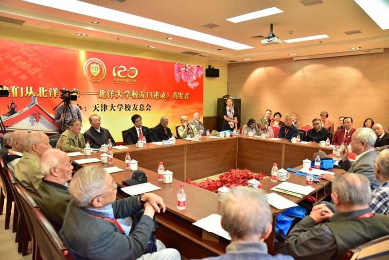 校庆前夕,汇集120余位校友对母校深情回忆和祝福建言的《我们从北洋走来——北洋大学口述录》由天津大学出版社出版。“口述录”是北洋校友献礼母校华诞的礼物,两年多来,校友总会赴各地遍访健在的1936-1951年入学的北洋校友百余人,传递母校的问候,倾听长者的故事,与老学长们一同穿越时空的阻隔,重温青春的记忆。
