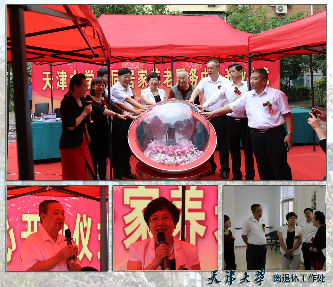 仪式上,汪曣发表致辞。他表示,天津大学居家养老服务中心的顺利开业是政府、天津大学和天同集团三方共同努力的结果,也是天津大学在双甲子校庆和教师节到来之际为老年朋友献上的一份大礼。天津大学老龄事业将会在三方齐心协作下取得更大发展,切实解决天津大学离退休教职工群体所关注的医疗、配餐等居家养老方面的问题。随后,郑燕翔、姜春琦等领导进行总结性发言,给予了天同居家养老中心极大的肯定,重点阐述了成立天大居家养老服务中心的的重要意义。