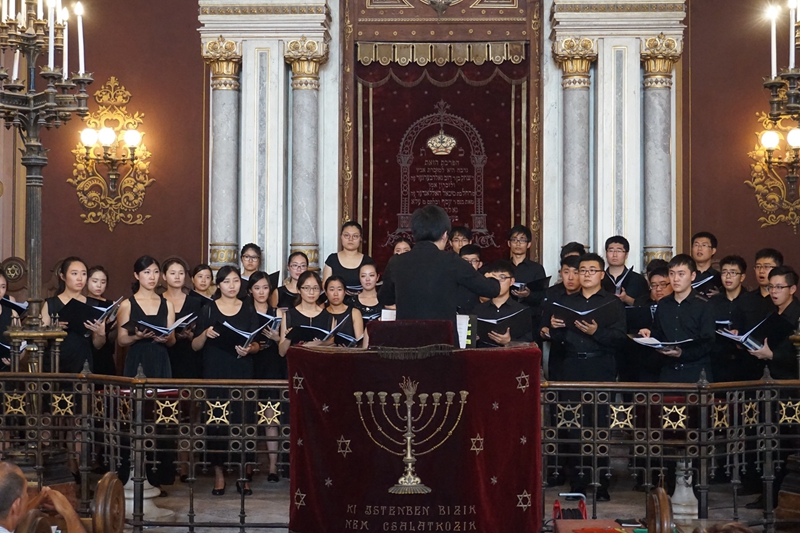 本站讯 (通讯员 史慧)当地时间7月28日下午,北洋合唱团在佩奇犹太教堂与来自以色列的美瓦萨利教会合唱团共同举办了一场音乐会。北洋合唱团用极富特色的东方旋律,纯净明亮的北洋音色,体现了中国音乐之魂。