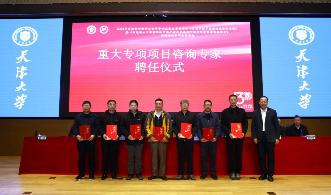 在重大专项咨询专家聘任仪式环节,杨贤金为马工程咨询委员、教育部高校思政课教指委咨询委副主任、新华社原党组成员、副社长路建平,马工程咨询委员、国务院军事学学科评议组成员、原南京政治学院院长、空军少将蒋乾麟教授等七位专家颁发了聘书。