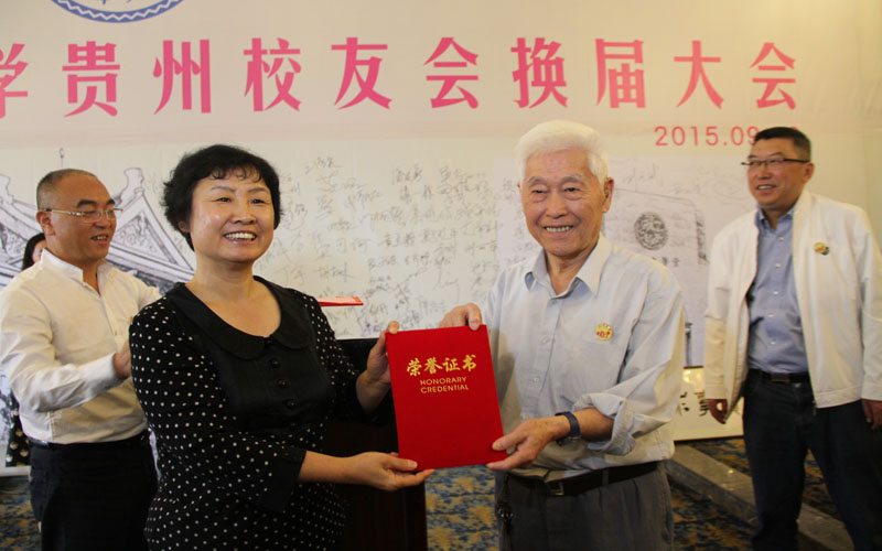 湖南校友会会长汪晓兵和邯郸校友会会长张秋菊等校友专程前来祝贺,并相互交流分享了在建设地方校友会方面的心得经验。上海、厦门、陕西等兄弟校友会也同时来电祝贺。会议上,校友们唱校歌,话往事,情意浓浓,更有1955级校友向贵州校友会赠送了自己家藏的“实事求是”校训牌匾。