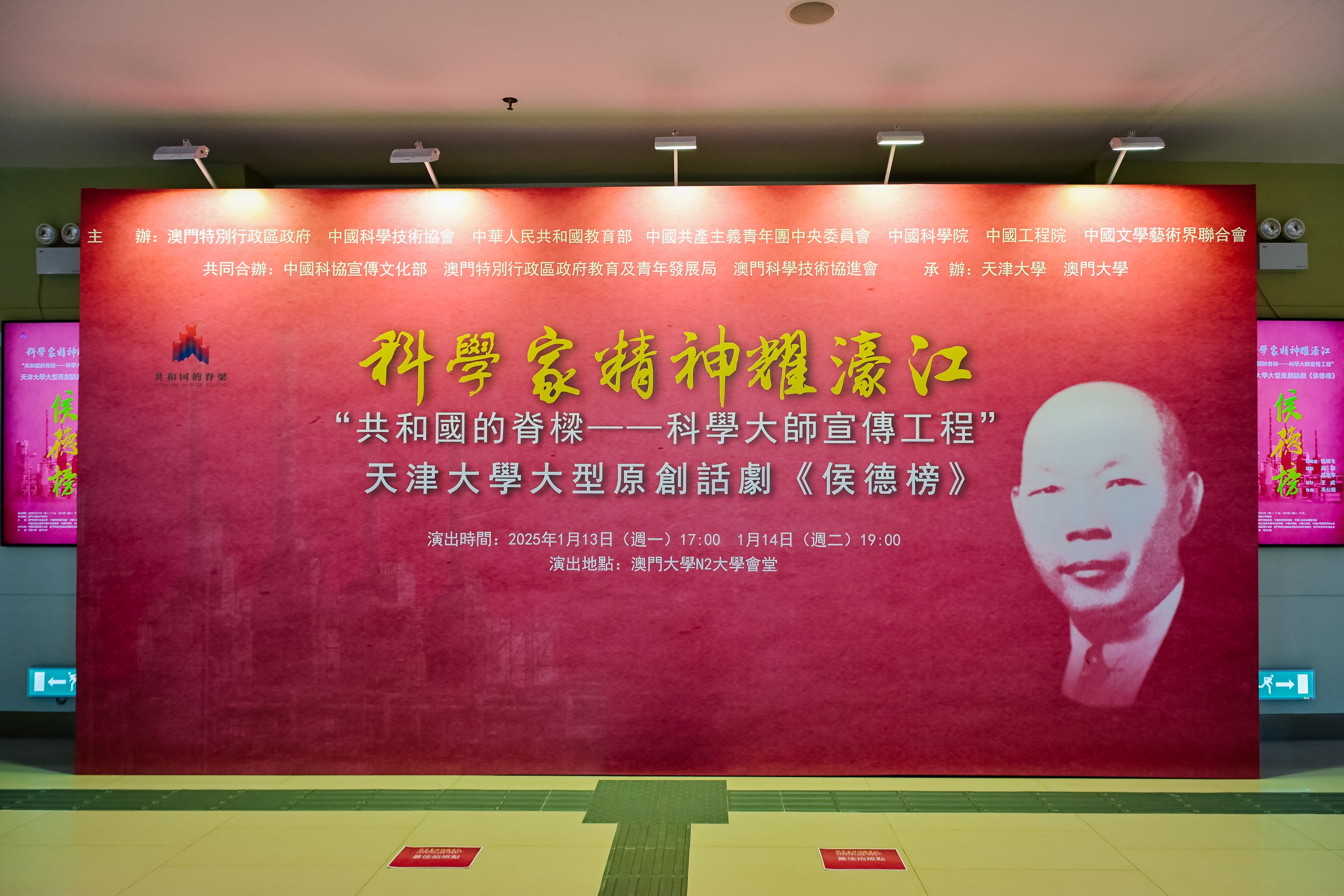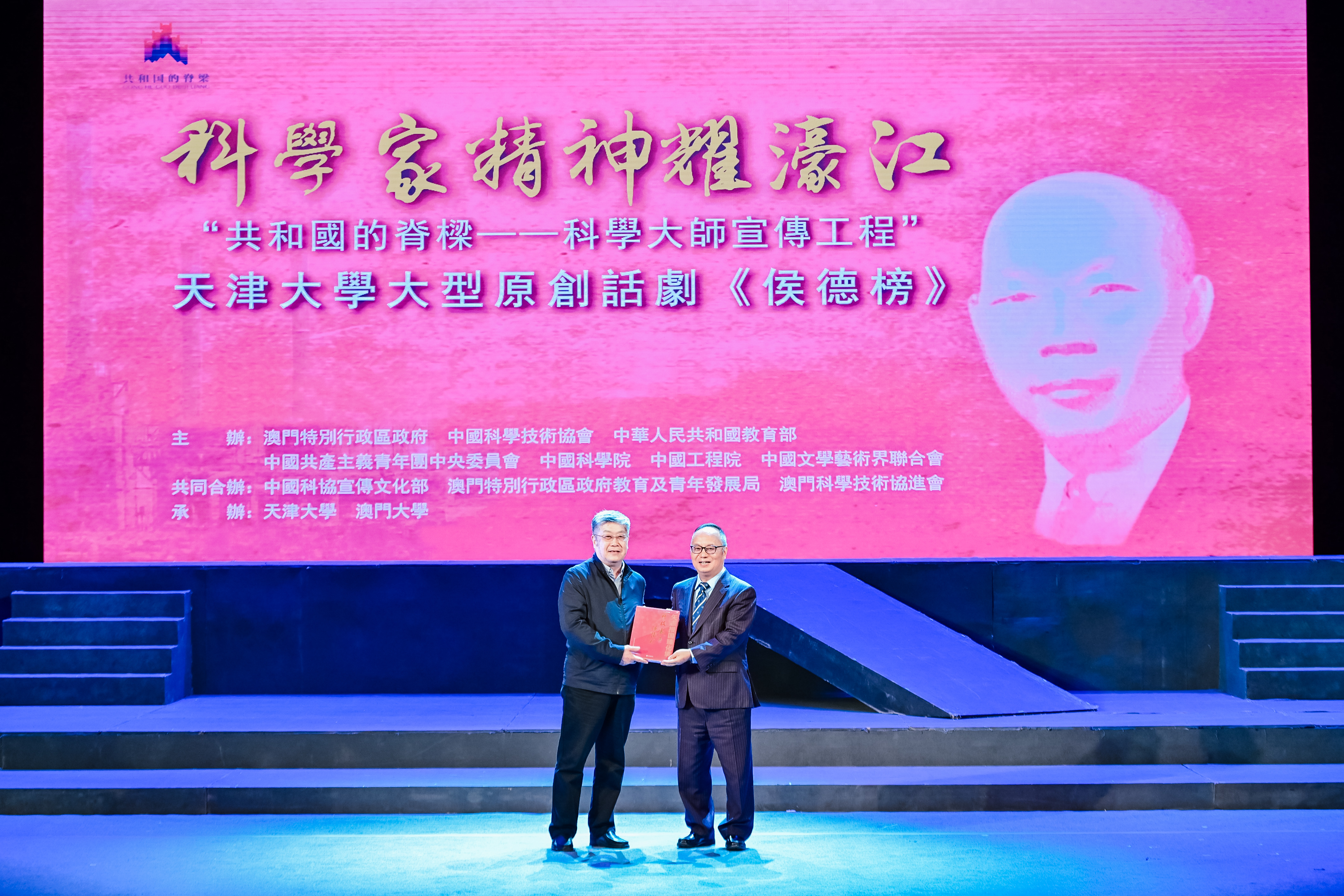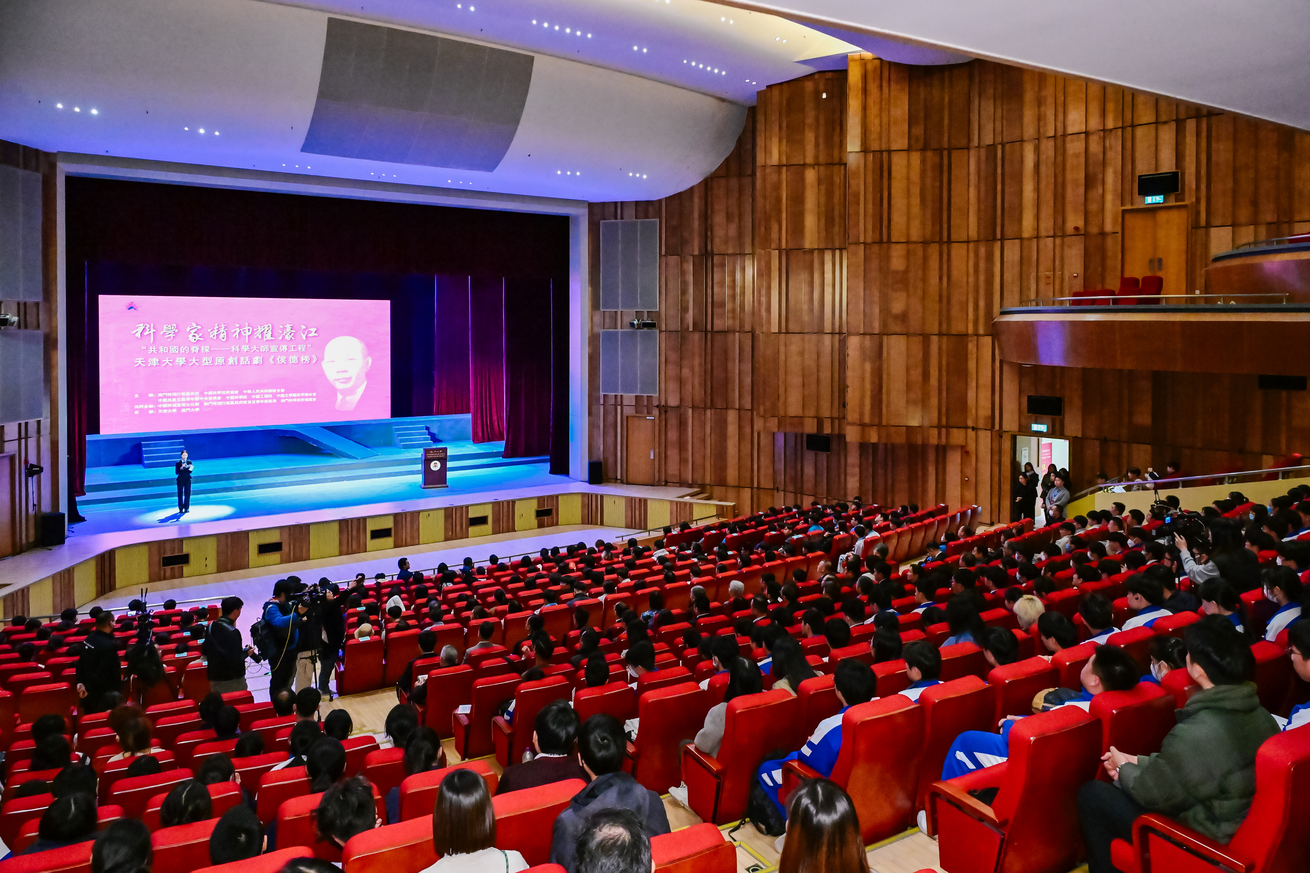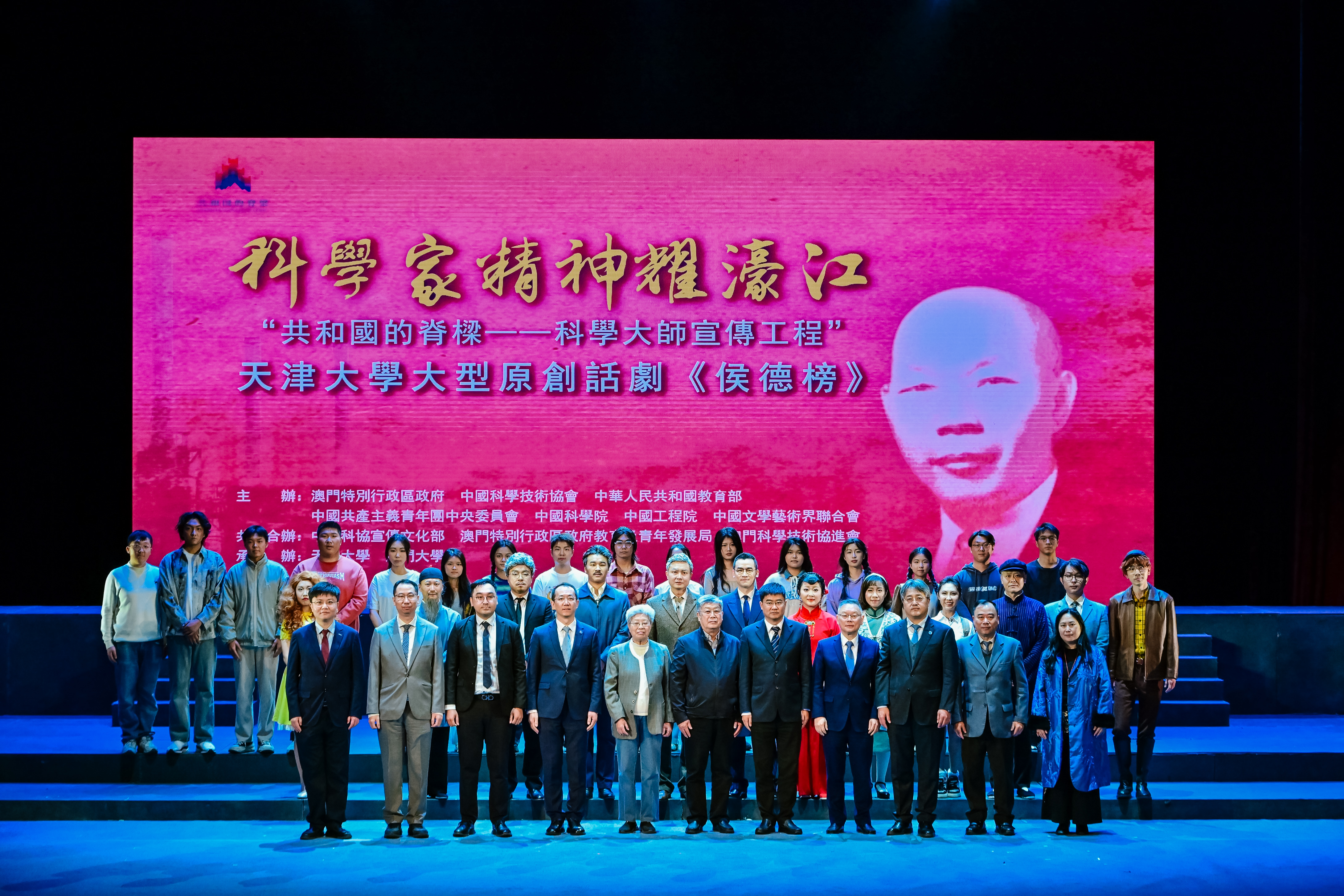 本站讯(通讯员 刘洋) 2025年1月13日、14日,“共和国的脊梁——科学大师宣传工程”剧目之一、天津大学原创话剧《侯德榜》连续两天在澳门大学N2大学会堂举办演出专场。现场座无虚席,千余名师生到场观看,共同走近侯德榜先生的一生,感悟科学家精神。此次活动由澳门特别行政区政府、中国科学技术协会、中华人民共和国教育部、中国共产主义青年团中央委员会、中国科学院、中国工程院、中国文学艺术界联合会主办,中国科协宣传文化部、澳门特别行政区政府教育及青年发展局、澳门科学技术协进会共同合办,天津大学、澳门大学承办。