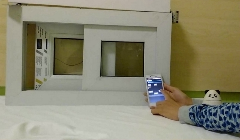 细心的学生们还实现了智能窗户和室内空气净化器的启停联动,关窗时净化器启动,开窗时净化器停止运转。如果房间主人只是想遥控关窗,那也没问题,有手机APP软件实现远程操作。