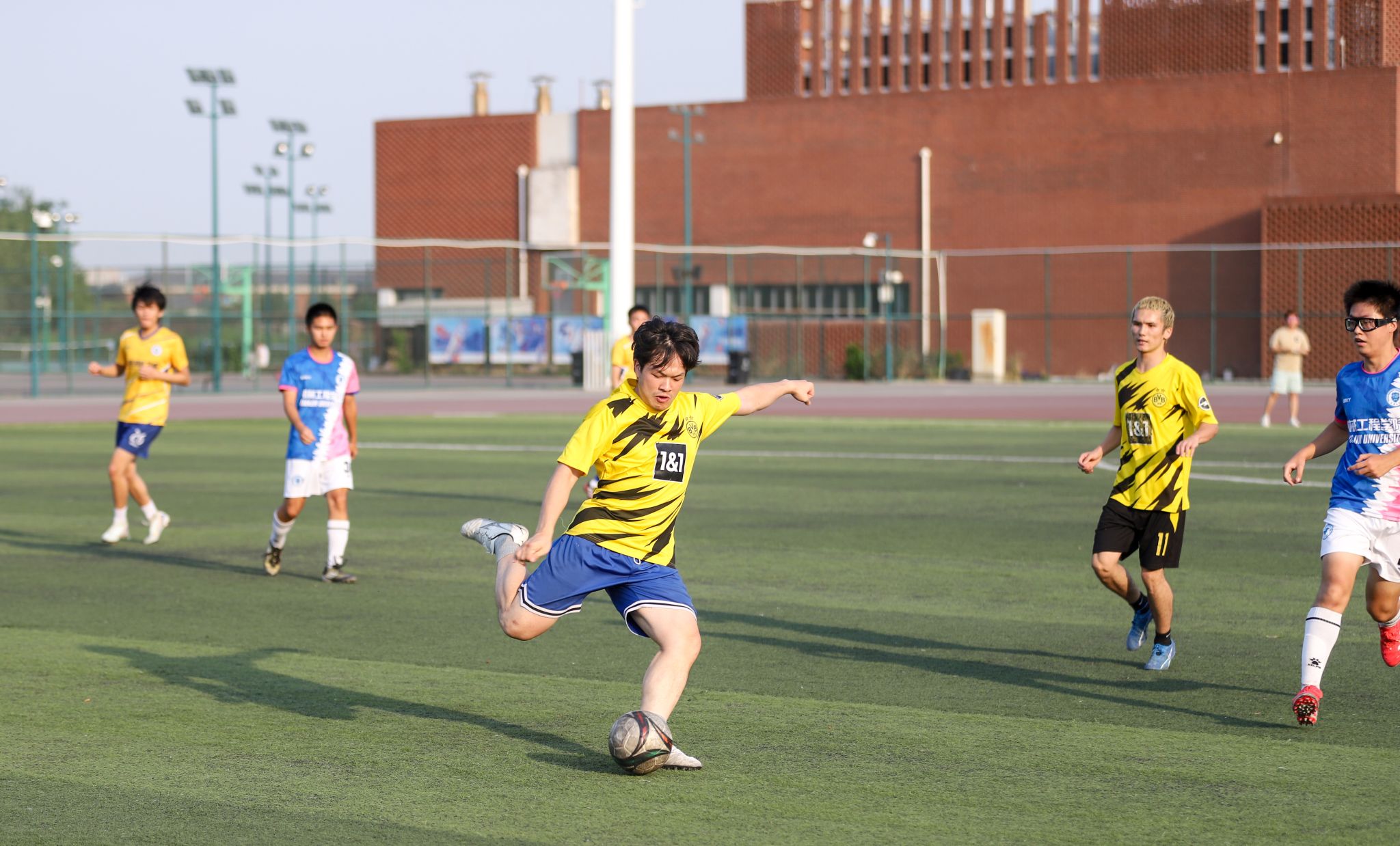 球员在比赛中射门