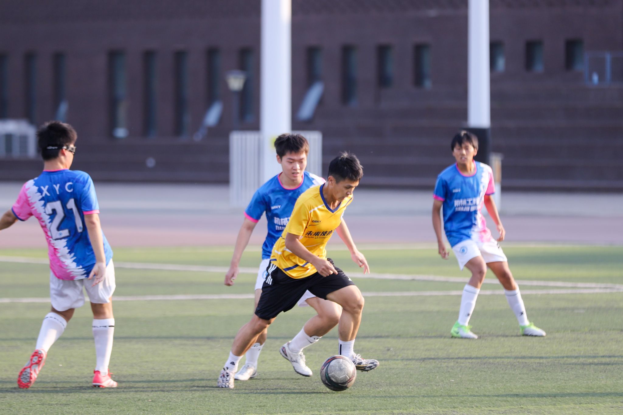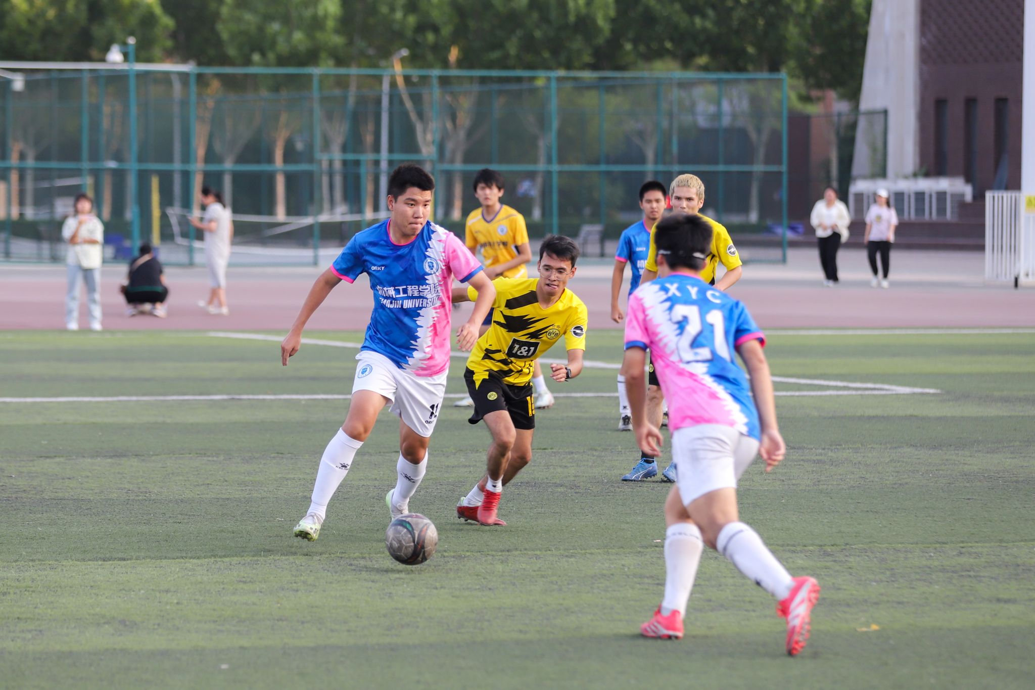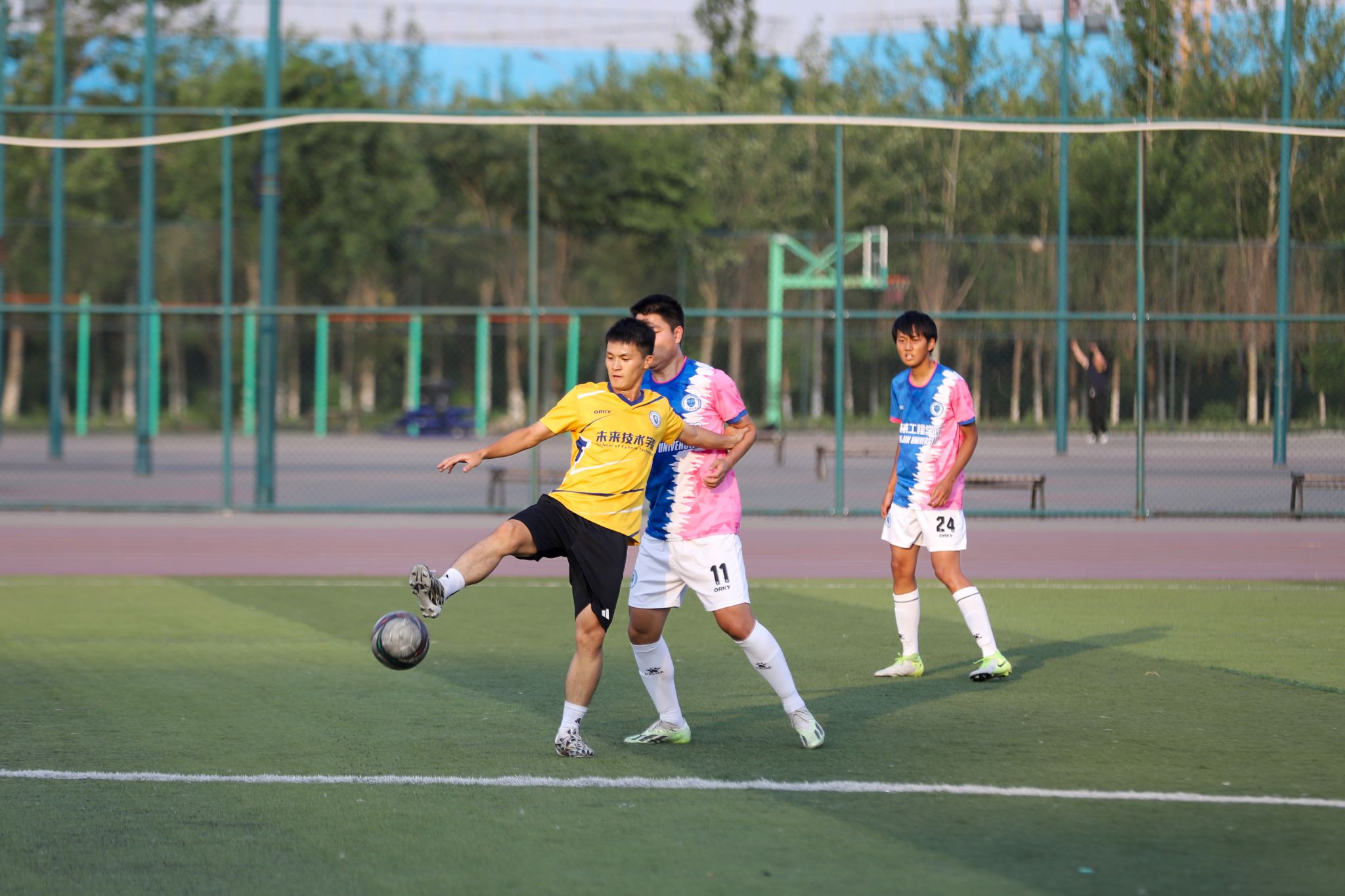 本站讯(图文记者 刘延俊)6月11日,天津大学“中国飞鸽杯”足球比赛北洋园校区冠亚军及三四名决赛同时哨响,经过上下半场激烈角逐,求是文教联队1:0战胜机械工程学院取得冠军,智能与计算学部、环境工程学院分列三四名。