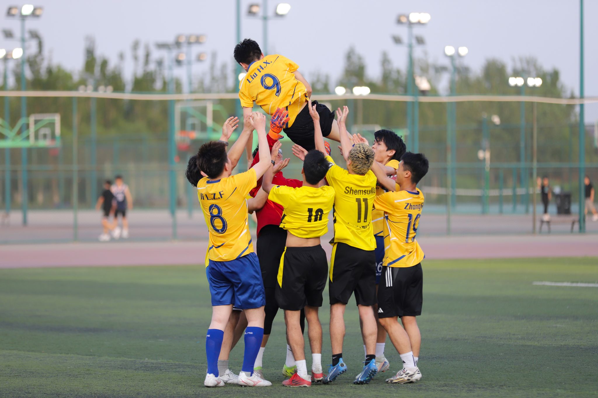 求是文教联队赛后庆祝胜利