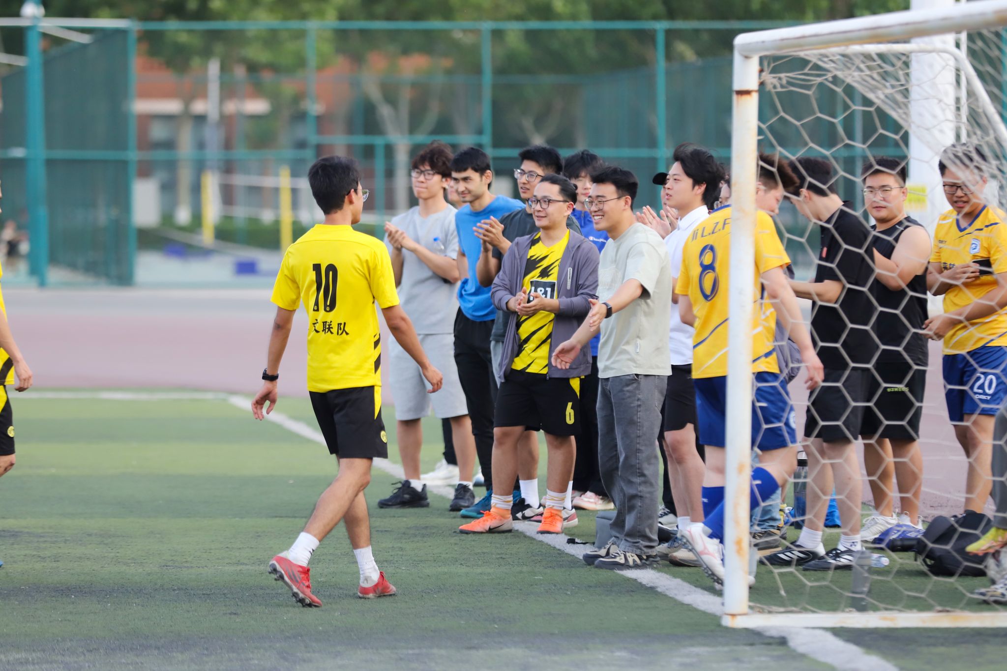 求是文教联队观众迎接队员下场