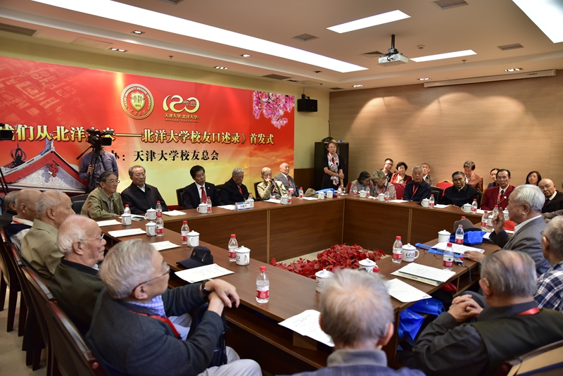 在天津大学(北洋大学)120周年华诞前夕,汇集了近两年多来北洋校友采访实录90人83篇、珍贵历史照片200余幅的《我们从北洋走来——北洋大学校友口述录》一书正式与广大读者见面。在天津大学校友总会的邀请下,10月1日下午,北洋老校友出席了《我们从北洋来-北洋大学校友口述录》首发式。在踏入会议室的一刹那,看到多年未见的同窗,老校友们潸然泪下,述说着母校的过往与当下,老校友们万分激动,并为学校未来建设出谋划策。作为特邀嘉宾,梁老回忆了求学母校的感人瞬间,勉励天大学子继承北洋光荣传统,奋发图强,早日成为国家栋梁之才,祝愿母校校庆活动顺利,希望珍贵的口述史能够百代相传。会后,袁老、梁老分别将个人撰写的《我这颗种子》、《让世界更美好点》赠与天津大学,为母校120岁生日献礼。老校友虽已离校多年,仍记挂着母校的发展,不忘为母校谏言献策,传递着求真务实的北洋情怀。