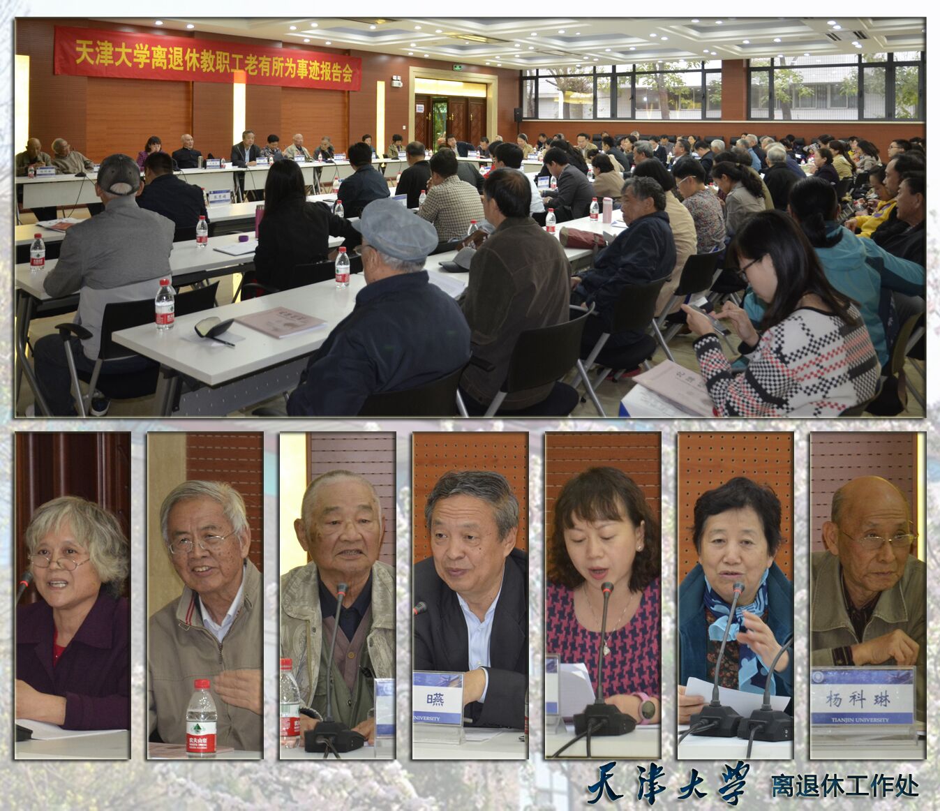 据悉,老有所为报告会系2015年天津大学“敬老月”系列活动之一。离退休工作处在全校范围内征集了四十八个老有所为先进集体与先进个人的典型事迹,制作成《北洋枫彩-天津大学离退休教职工老有所为先进事迹合集》和“老有所为人物事迹展”,在全校范围进行宣传,在九楼旁的橱窗进行展出。