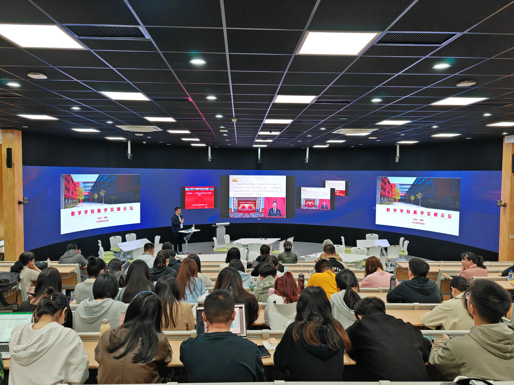 为深入学习贯彻修订后的《中国共产党纪律处分条例》,落实党纪学习教育要求,4月28日上午,数学学院举办“真学实做”论坛,中共天津市委党校党史教研部副主任、副教授杨肖应邀作题为“以案说纪:《中国共产党纪律处分条例》解读”专题辅导报告。数学学院党委理论学习中心组、师生党员、发展对象、入党积极分子等参加,报告由学院党委副书记刘佳主持。