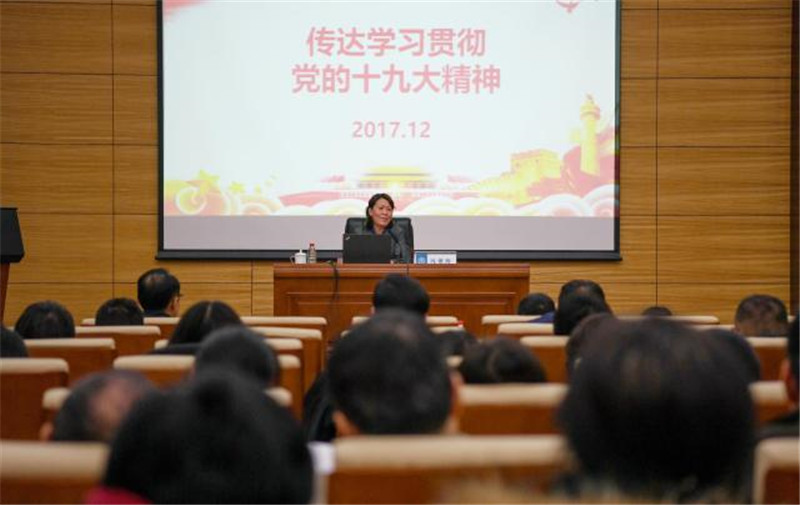 2017年12月15日,冯翠玲在天津大学数学院宣讲十九大精神。新华社记者 白禹 摄