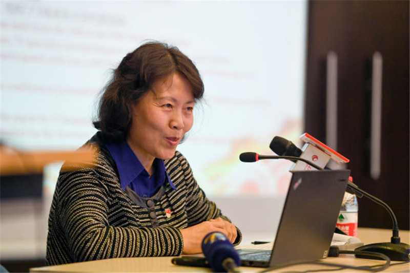 2017年11月8日,冯翠玲在天津大学药学院举办十九大精神宣讲会,通过中英双语为学院师生进行宣讲。天津大学药学院是中国首批4个国际化试点学院之一,外籍教师超过半数,两任院长都是外籍。新华社记者 白禹 摄