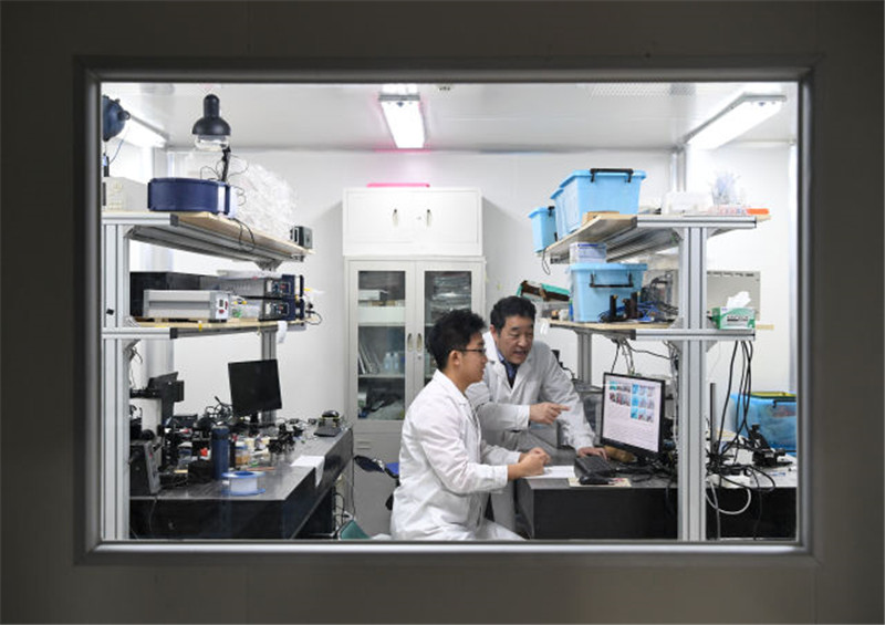 2017年12月13日,天津大学博士生导师、国家光纤传感973计划首席科学家刘铁根(右)在实验室指导学生做实验。刘铁根说,2017年天津大学以第一完成单位身份获得国家技术发明二等奖,今后将在十九大精神指引下带领团队继续努力,取得新突破。新华社记者 申宏 摄