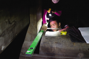 在何蓓洁看来,古人建筑的思维方式和今人有着很大的差别。“当然也有一样之处,比方说中国传统木结构建筑,柱子梁檩这套系统是一样的。”不过天花上面留存的构件大部分是明代遗存,“使用的是楠木,构件的截面非常大,有的梁高度甚至能达到半人高,而这样大型的建筑材料到清代以后就比较少见。”让测绘团队尤其印象深刻的是真正上到天花之后的震撼程度,“用材非常大,有的半米高左右,700多毫米,这也是皇家建筑的一大特点。”通常两个重叠着的构件会用两个木材分别制作,而在这里他们发现将一根整木木料雕成两个构件的方法,“就是说当时的工匠会尽量利用大截面的木材而不使它浪费,物尽其用,充分利用木材发挥效用,通过这种设计既让构件的受力面积达到最大,又节省木料,因为楠木在明代的时候开采已经很困难了。”