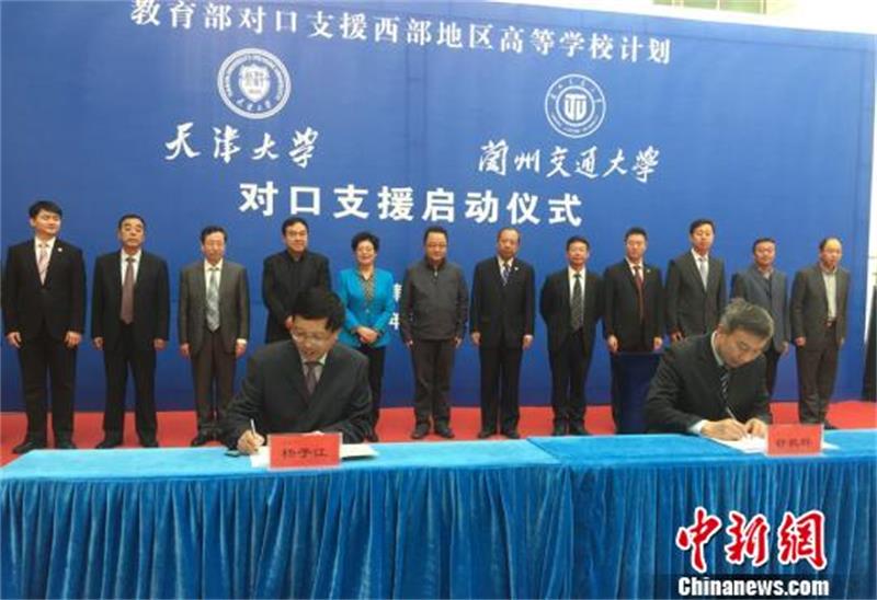 中新网兰州11月15日电 (记者 刘玉桃)14日,“教育部对口支援西部地区高等学校计划”——天津大学对口支援兰州交通大学启动仪式于兰州交通大学举行。“对口支援也是对口交流、合作,有利于双方的共同提高、共同发展。”天津大学党委常务副书记舒歌群表示。