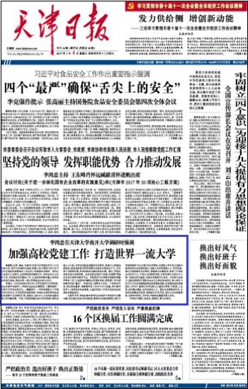 《天津日报》(2017年1月4日头版)