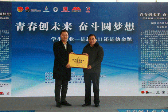 “圆梦青春基金”向“《奋斗大讲堂》”和“香港联盛”颁发了爱心企业捐赠证书,并由圆梦青春基金秘书长文宣向天津大学优秀学子颁发了“优秀学子公益金”,天津市青少年发展基金会理事长孙伟向天津大学团委书记王开授牌“圆梦青春基金公益社团”。